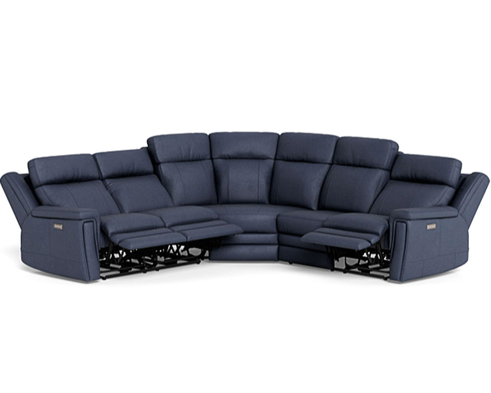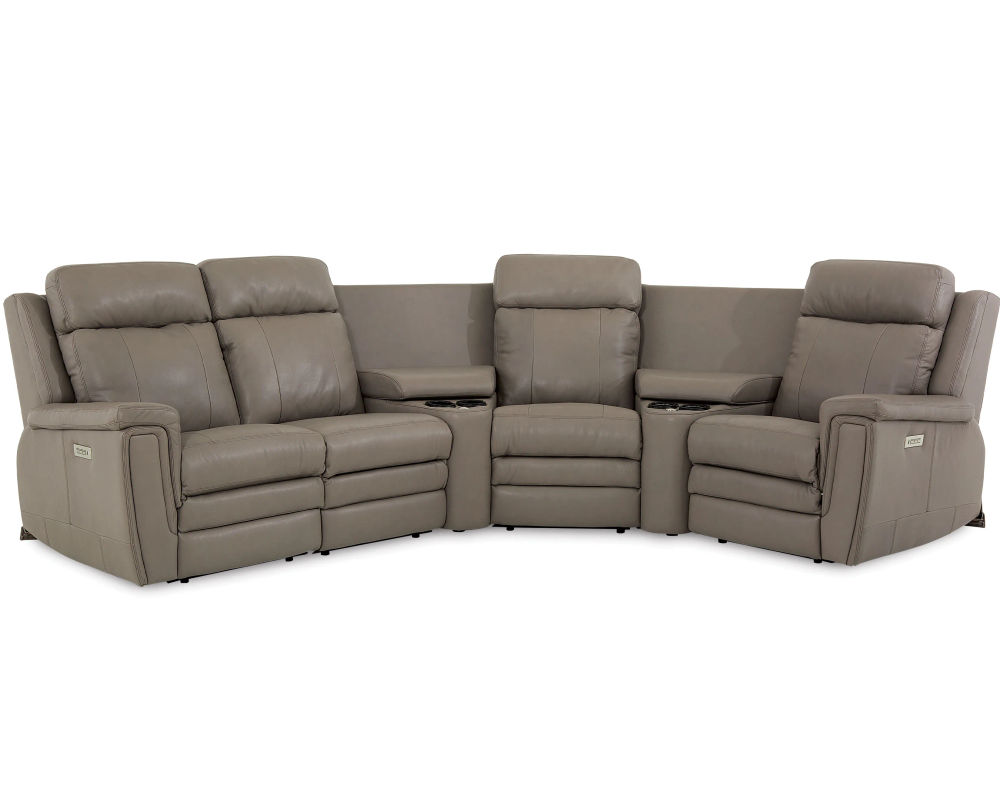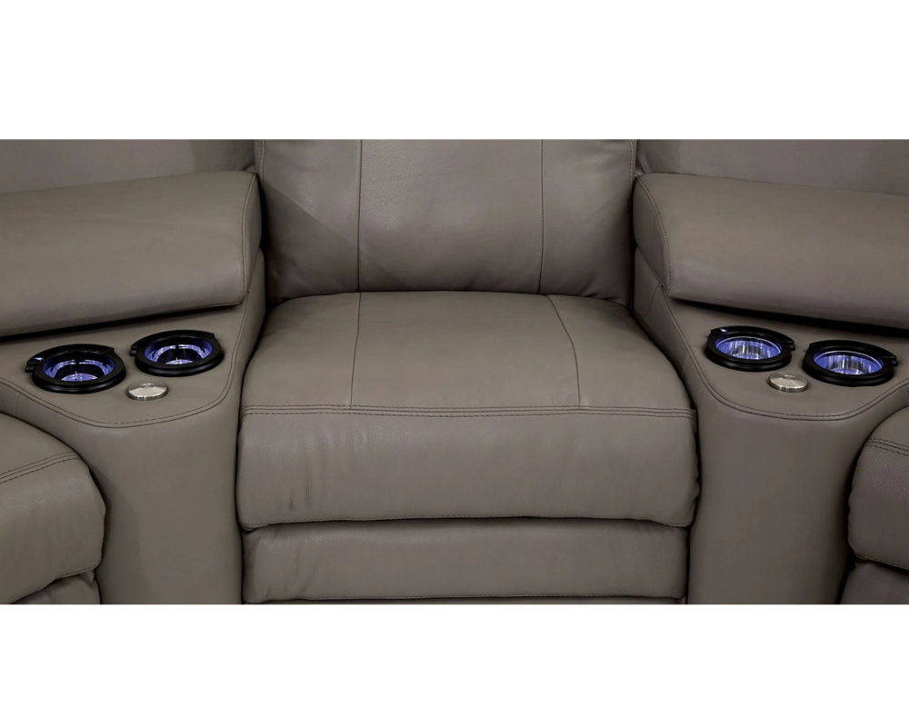 • Power recline and power headrests operated by a brushed metal power switch with integrated USB charging