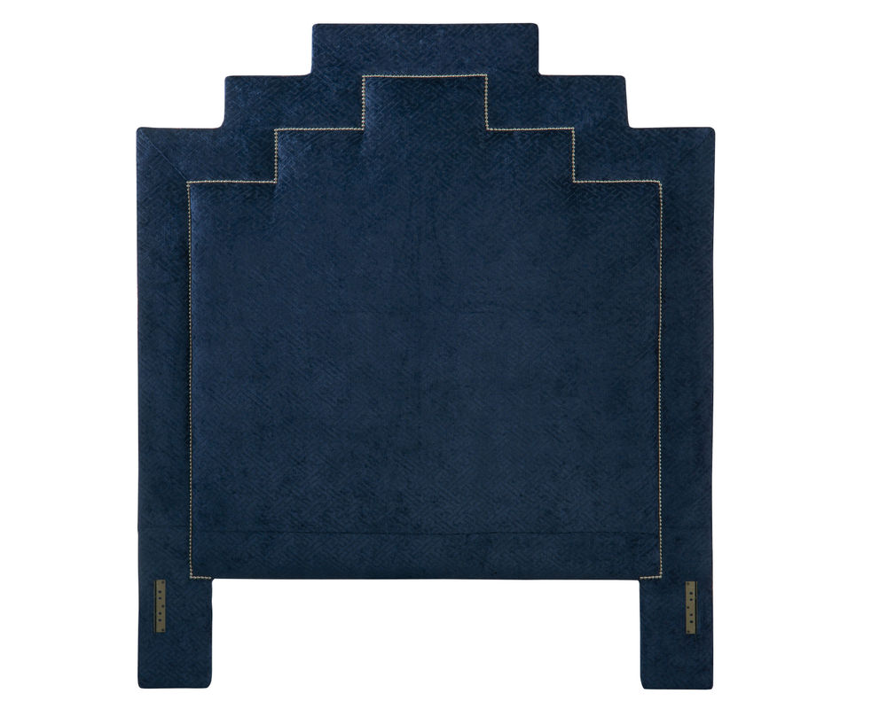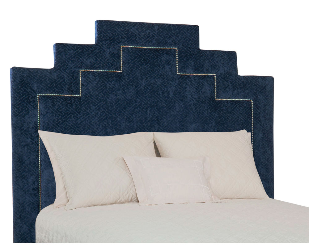 Create a beautiful master bedroom with the Shay Queen or King headboard. With just over 6 feet in height this bed features a stepping stone headboard with small nail head trim. Available in a wide selection of fabrics. Complete bed also available