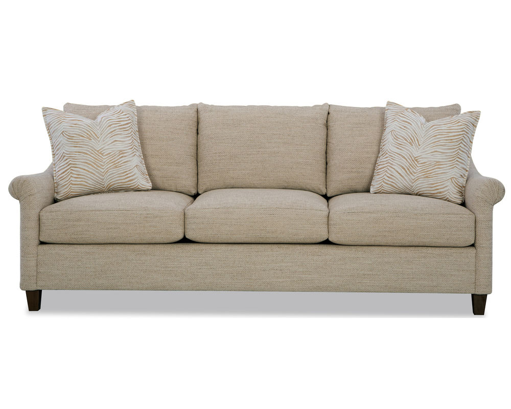 This sofa also has a Blend Down seat cushion, ensuring ultimate comfort and durability. The flanged Blend Down toss pillows add an extra layer of coziness and can be arranged for maximum comfort. The tapered legs add a modern touch to the design and provide sturdy support.