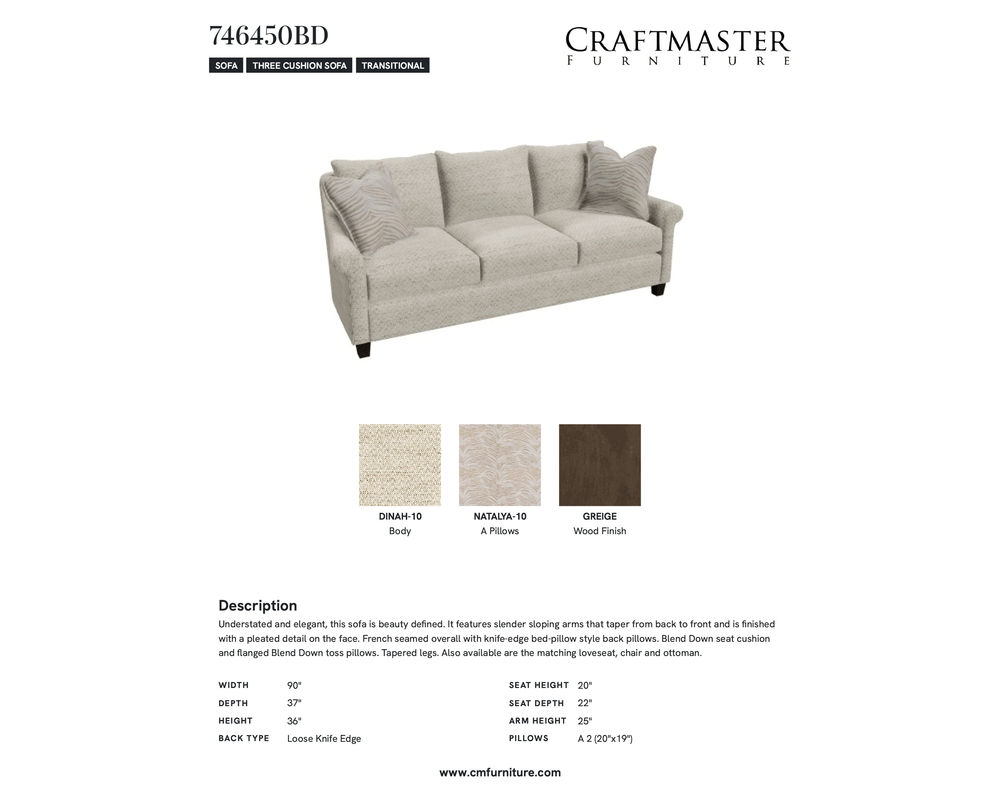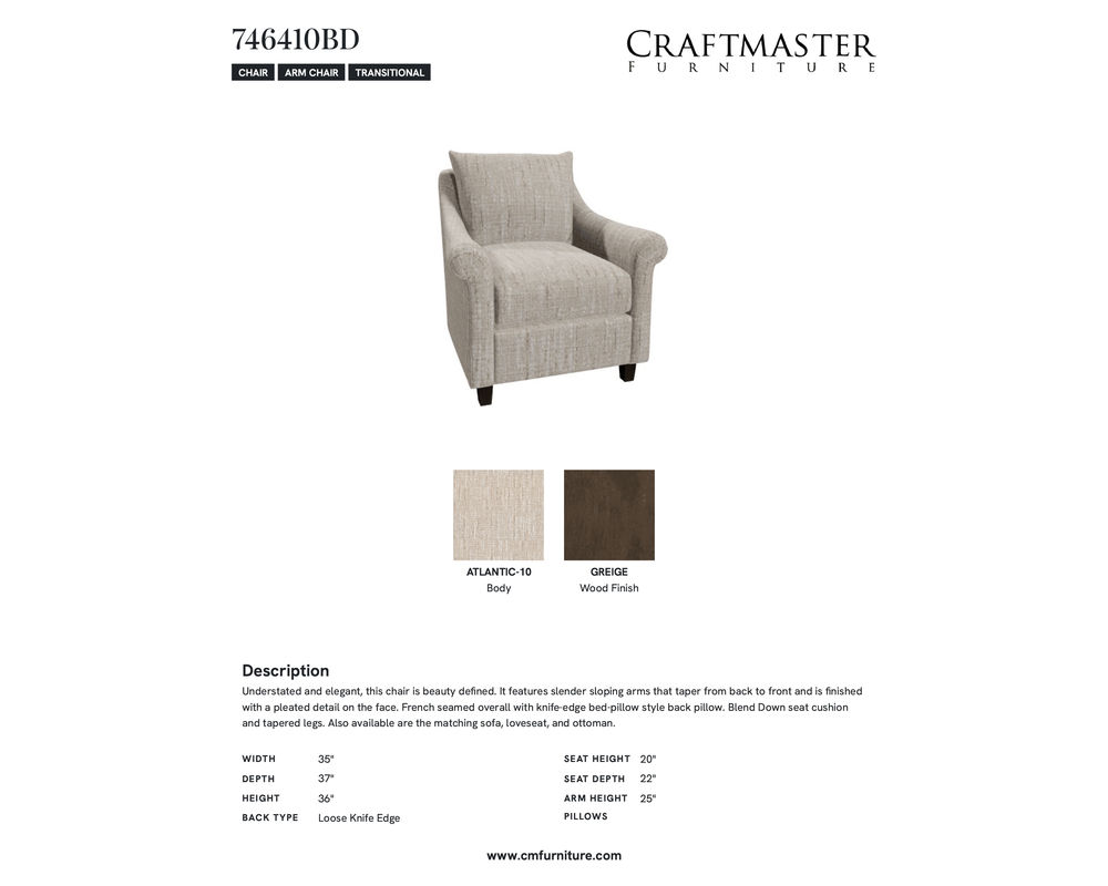NOTE: Due to dye lot variations from fabric suppliers, Craftmaster Furniture cannot guarantee dye lot matches unless products are purchased simultaneously.