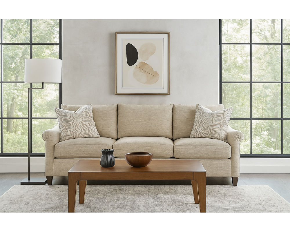Not only is the Shefield 7464 Sofa visually stunning, but it also offers exceptional comfort. The sofa is French-seamed overall, giving it a polished and refined look. The knife-edge bed-pillow-style back pillows provide excellent support and cushioning, making it the perfect spot for lounging and relaxing.