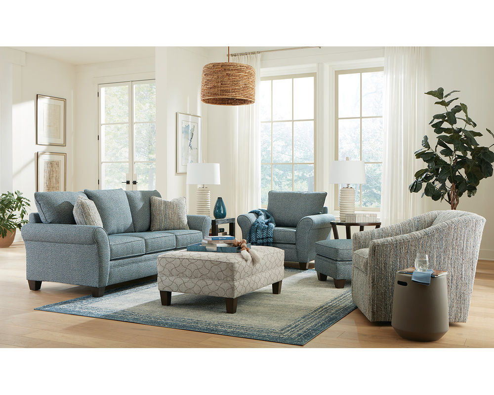 The Sheldon 7507 Sofa is designed for laid-back living with a welcoming, casual style that feels right at home in any space. Soft, rounded flare arms and cozy bed pillow–style back cushions create an inviting place to relax, while welted detailing adds a tailored touch. Finished with sturdy block legs, the Sheldon strikes the perfect balance between comfort and everyday durability.