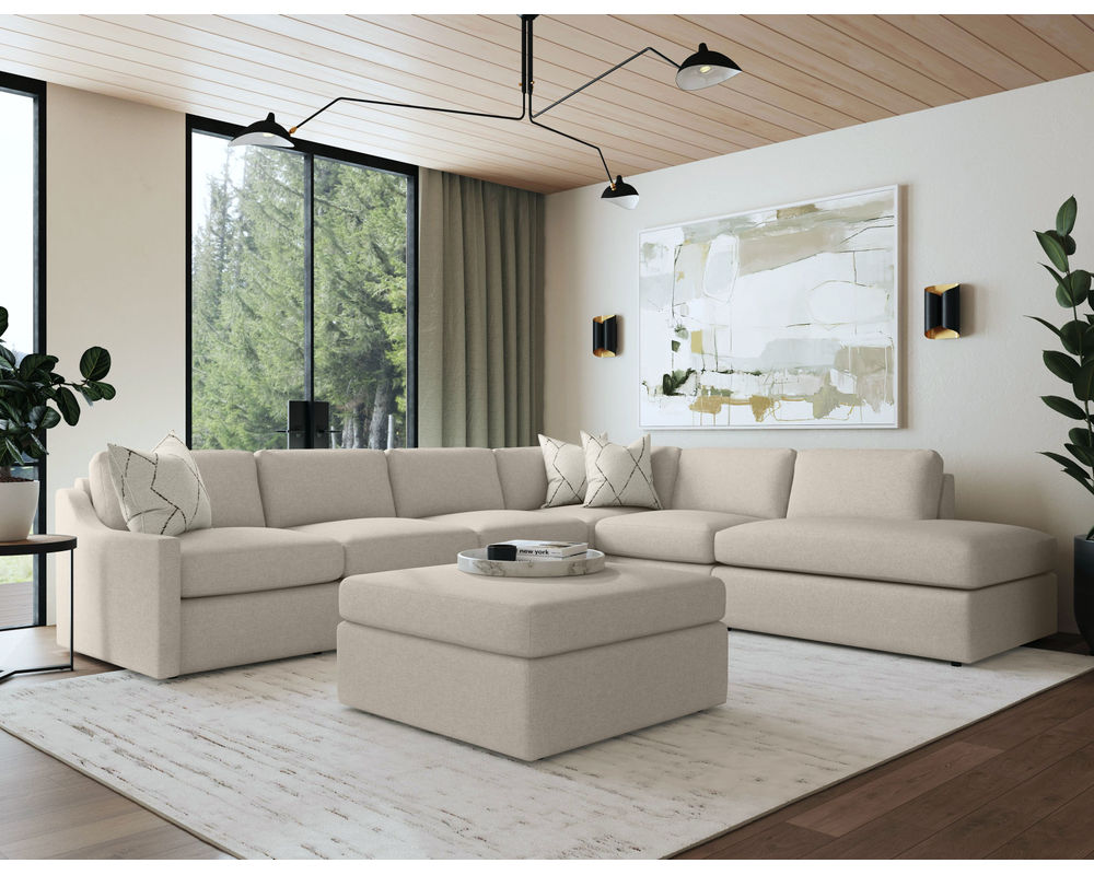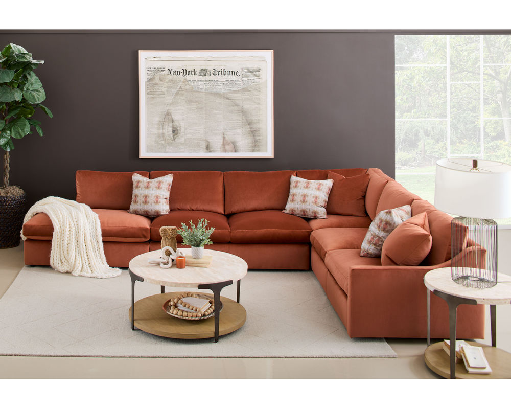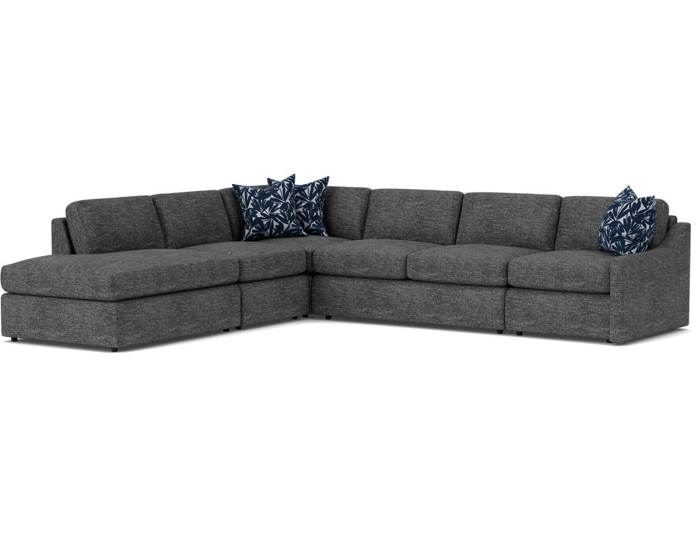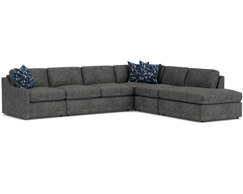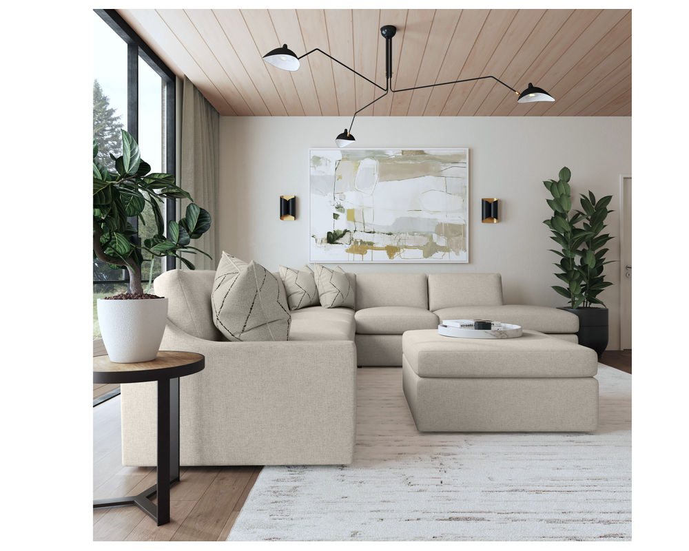 The Sky 5510 Track Arm Sectional is a luxurious piece of furniture that will bring a contemporary style and comfort to any living space. This modern sofa has a low, deep profile and wide, track arms, giving it a sleek look that will make a statement. But it's not just about looks: this sectional is designed to provide you with a cloud-like comfort, with removable, reversible seat and back cushions filled with a premium hypoallergenic polyester fill that feels like down. Whether you're relaxing or having guests over, the Sky sectional is the perfect spot to unwind. And with hundreds of fabric choices, you can customize it to match the style of your home. Let the Sky sectional transport you to a world of comfort and style. The seat and back cushions are also reversible, making it easy to switch up the look.