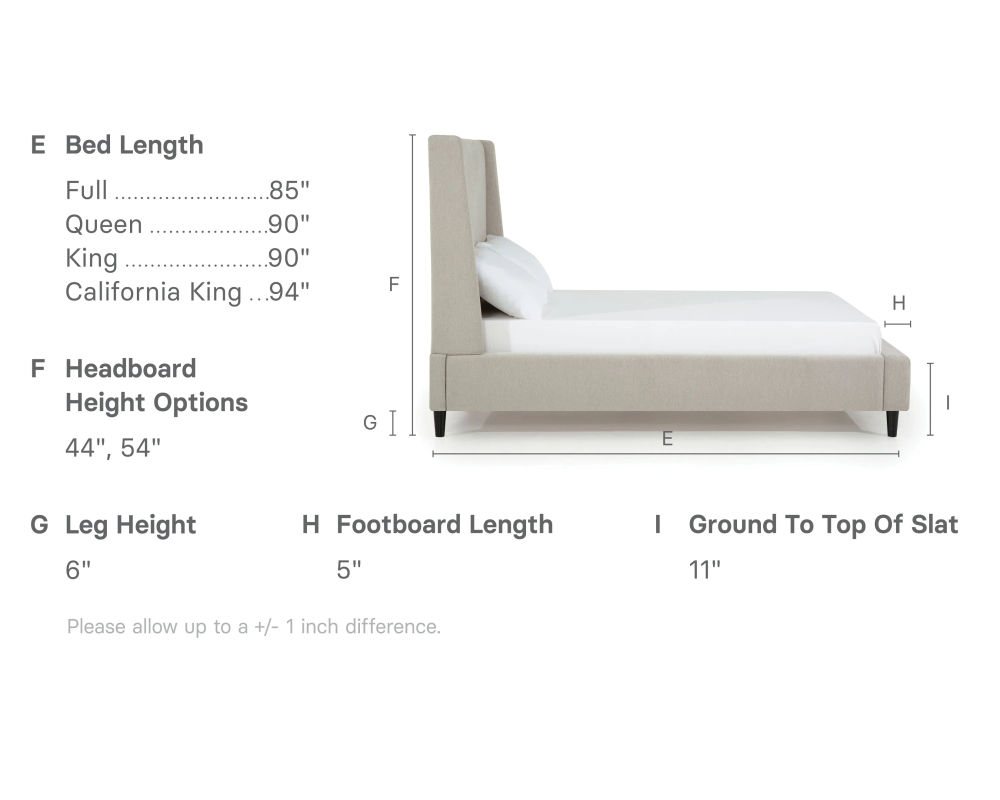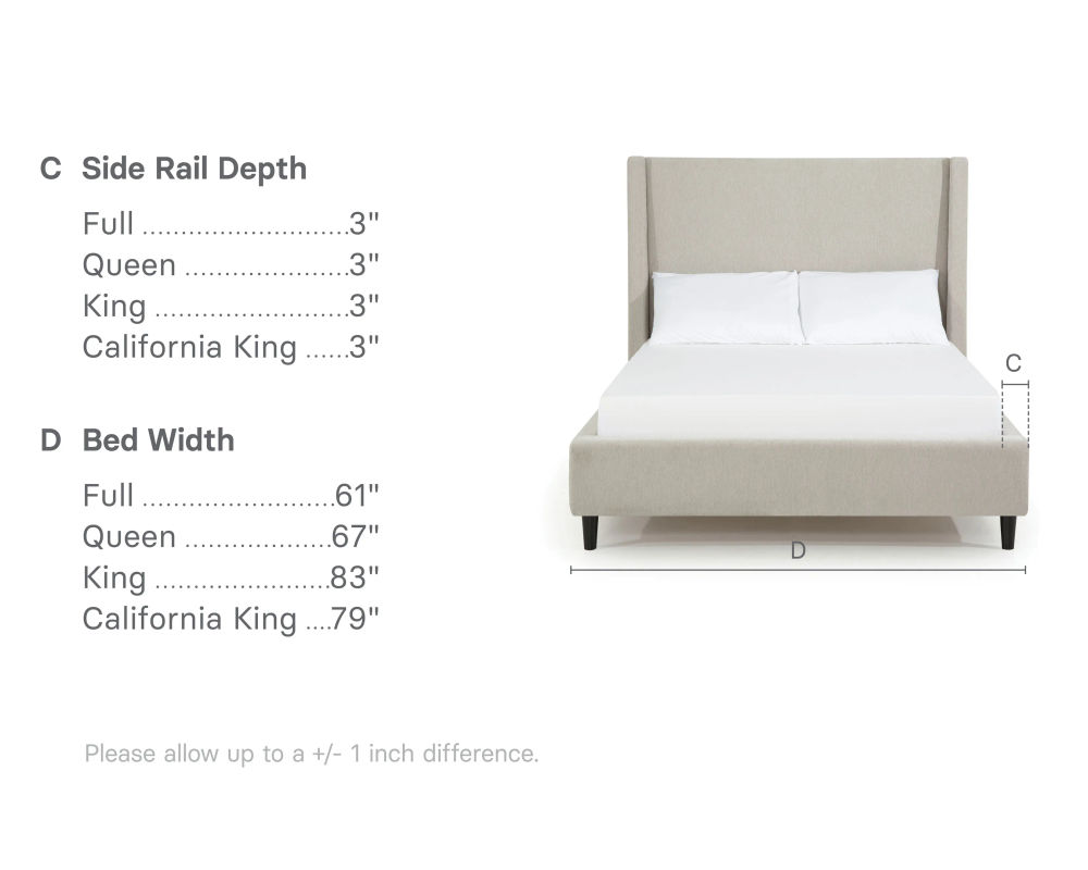In addition to its stylish design, the Skye bed also offers versatility in size. It is available in full, queen, king, and California king sizes, making it suitable for any bedroom space. For those who want extra room to stretch out, the California king size offers an additional 4" in length and 3" in width compared to the standard king size.