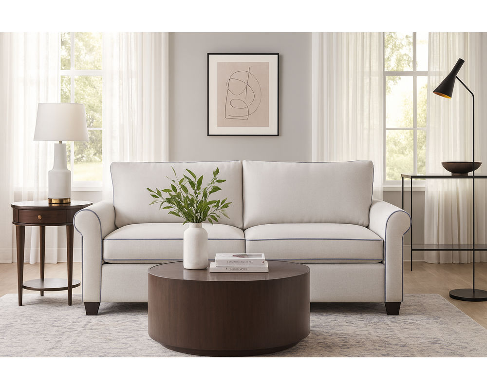 ✅ Transitional design with rolled arms, welt trim, and tapered block feet