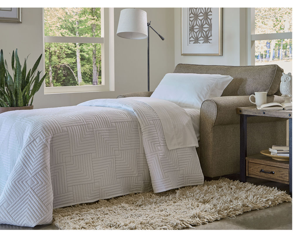 The Seabury 149 Sleeper is the perfect piece to host your overnight guests in style and comfort. With its classic design, this sleeper works great in your guest room or family room. It is available in three sizes - twin, full, and queen - to best accommodate your needs. Customize your own Seabury sleeper with your choice of fabrics and mattresses. We offer Visco and air mattress upgrades for added comfort. With its sleek design and comfortable materials, the Seabury 149 Sleeper is an ideal choice for any home.
