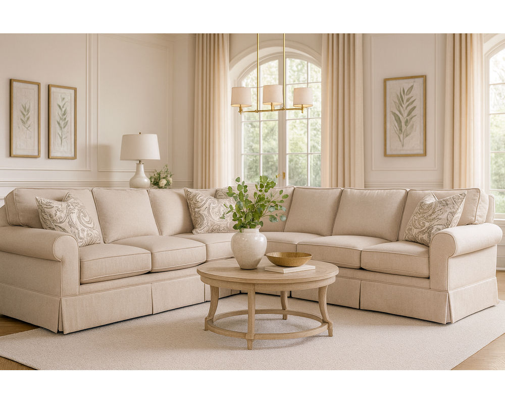 With its casual T-back design, rolled arms, and tailored skirt, Benton delivers a look that’s both relaxed and refined. Loose pillow back and seat cushions can be easily fluffed, turned, and cleaned, maintaining their shape and comfort for years. Featuring Comfort Plus high-resilience foam, this sectional offers exceptional durability, support, and everyday comfort—making it a family favorite that works as hard as it relaxes.