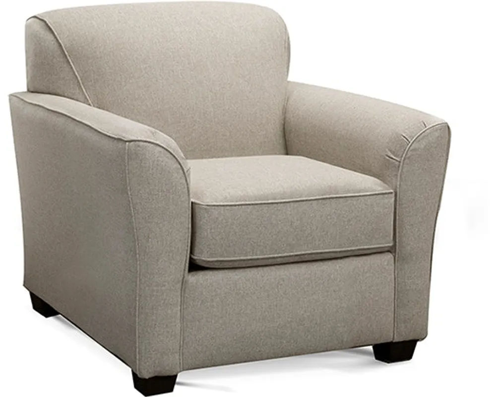 The Smyrna Chair from England Furniture delivers the same contemporary style and inviting comfort as the rest of the Smyrna collection in a perfectly scaled accent piece. Featuring a channel-stitched attached back and bordered seat cushion, this chair offers a tailored look with supportive, everyday comfort. The slightly flared, modified half-moon arms add a soft sculptural element while maintaining the chair’s clean, modern silhouette.