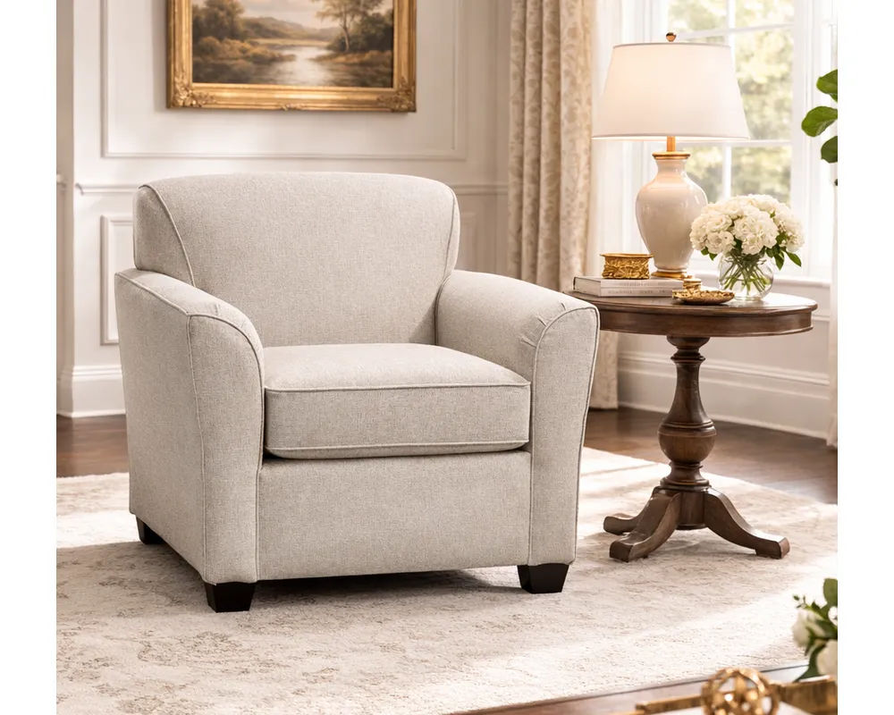 Built with durable sinuous wire construction and supportive foam seating, the Smyrna Chair is designed for lasting comfort and reliability. Its clean front rail and refined proportions make it an ideal companion piece to the Smyrna Sofa and Loveseat, or a stylish standalone accent for any living space.
