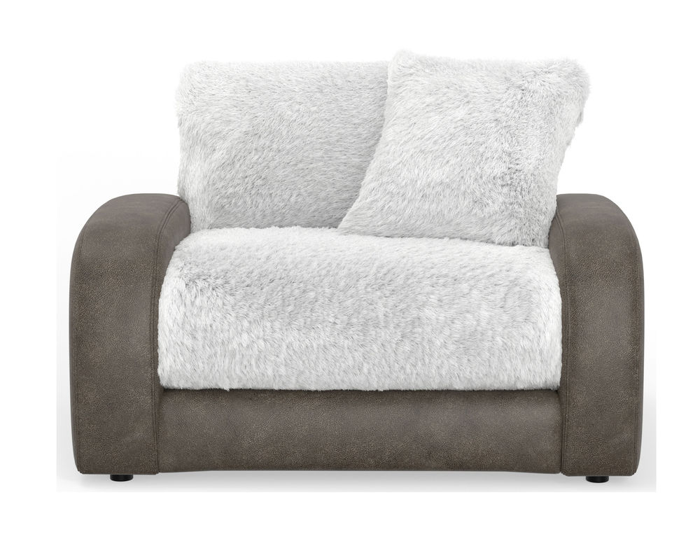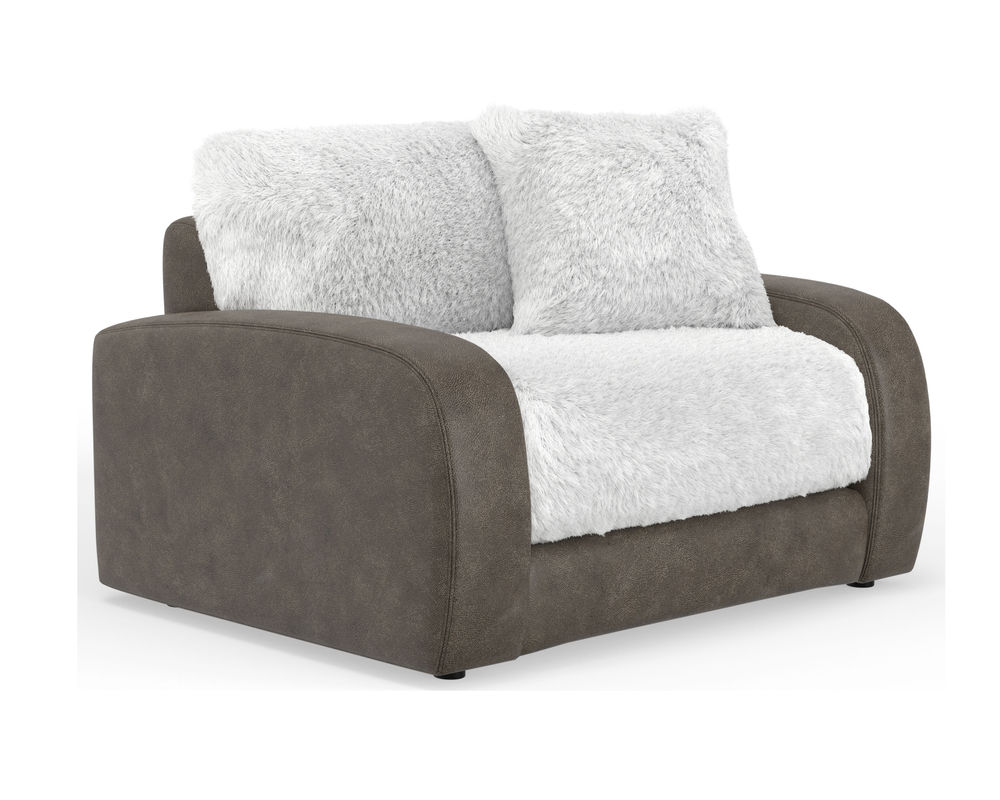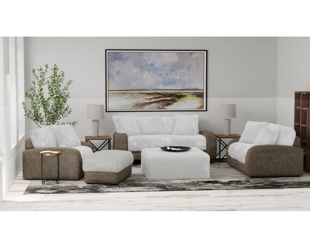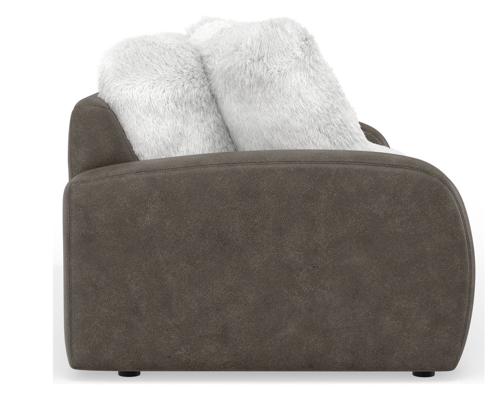 The Snowball 1320 Sofa from Jackson Furniture - is a wild and crazy addition to your home that promises unbeatable comfort. This two-tone fabric sofa is the perfect blend of style and durability. The inside is covered in a fuzzy, warm fabric, while the outside is upholstered in a contrasting, durable brown fabric. The modern design of this sofa is highlighted by its sloping track arms and reversible seat and back cushions, making it a perfect fit for any contemporary living space. And as a bonus, the sofa comes with matching pillows for a complete and cohesive look. But that's not all - this fantastic piece is on sale for a limited time, so make sure to add the Snowball 1320 Sofa to your home today!
