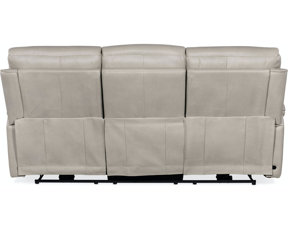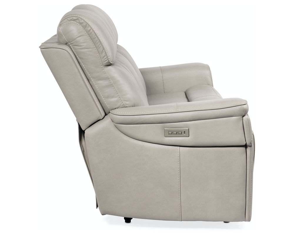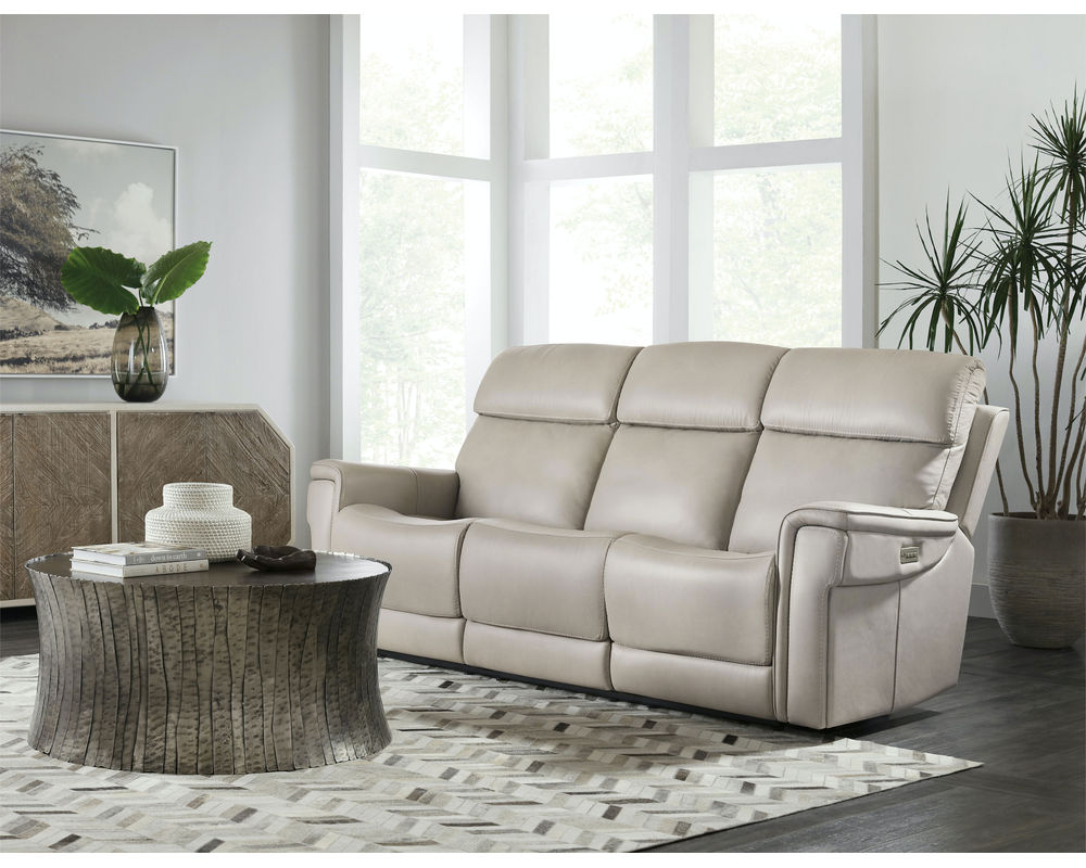 Finally, there’s a casual contemporary loveseat that’s stylish and tasteful. Featuring a bustle back and saddle-padded arms, the Lyra Zero Gravity Power Sofa with power headrest is generously scaled with clean lines and top-stitch detailing. Lyra also offers adjustable lumbar support, a USB port and pop-out arm panel with a metal cupholder, and is covered in the Sahara Ash semi-aniline top-grain leather.