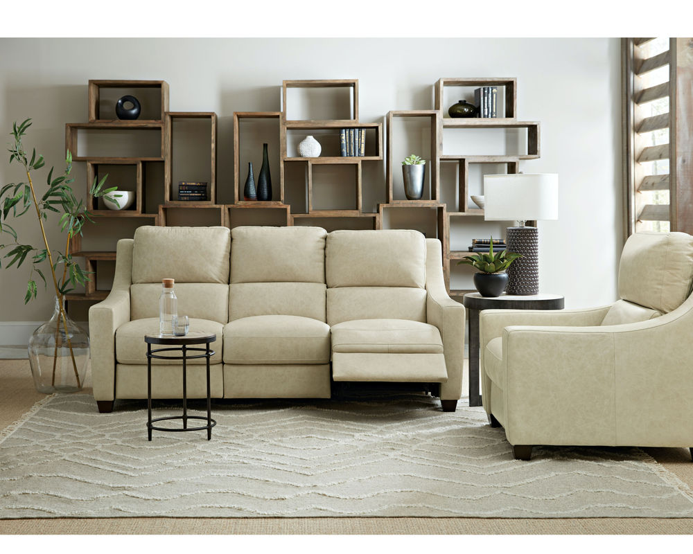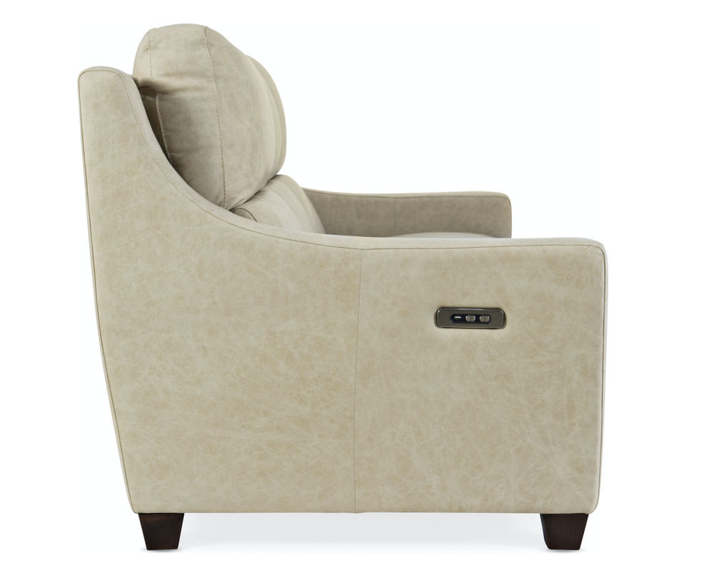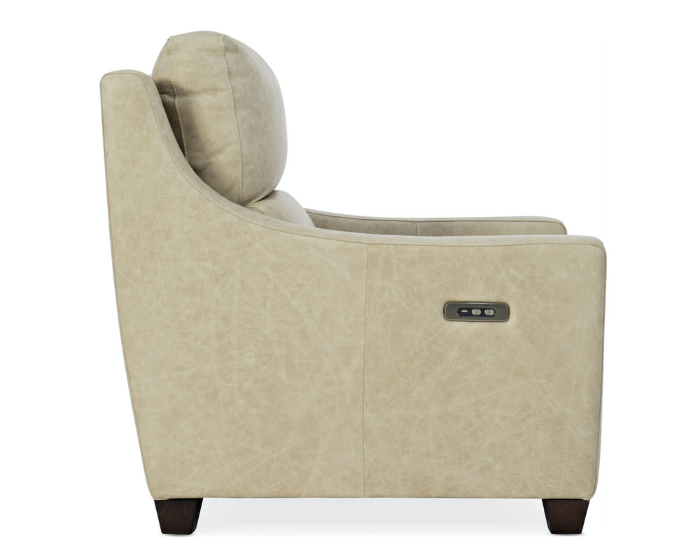 • Bustle back • Wood feet • Power recline • Power headrest