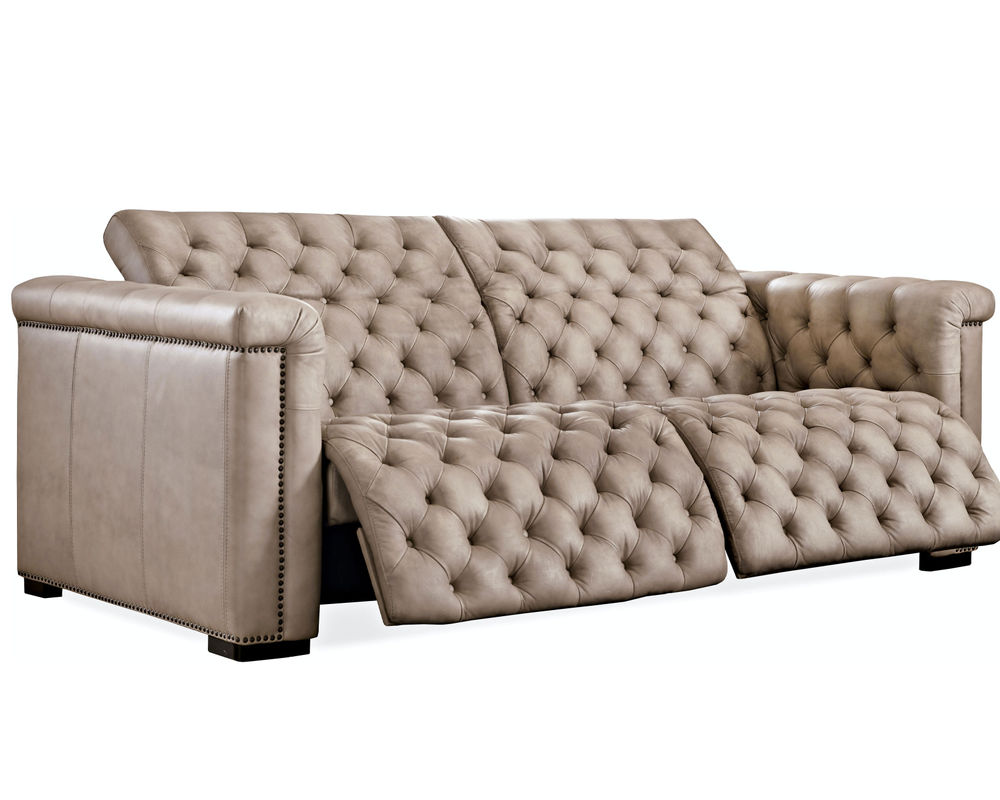 Inspire awe with your family and friends, who will never believe a sofa as stunning as the Savion has two power recliners, and that each of the 2 seats features an adjustable headrest. The individually operated headrests invite you to lean back and relax your upper body while watching TV, reading or conversing, and the seating units transform to recliners with a smooth power control button, offering exceptional comfort. Savion blends classic elegance with modern flair, combining traditional button-tufted tailoring with a sleek profile back. The hand-wiped l Giovanni Taupe leather cover is finished for stain protection and is hand wiped, offering authenticity and sophisticated appeal. Hooker Furniture Upholstery is a designer-inspired collection of upscale leather seating that includes versatile reclining chairs, modern-day reclining sofas, eclectic club and artisan accent chairs, as well as a selection of executive desk chairs for the home. Designed and curated to appeal to a variety of style tastes, each piece from Hooker Furniture Upholstery is meticulously crafted in a unique selection of textures and hues.