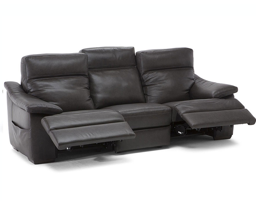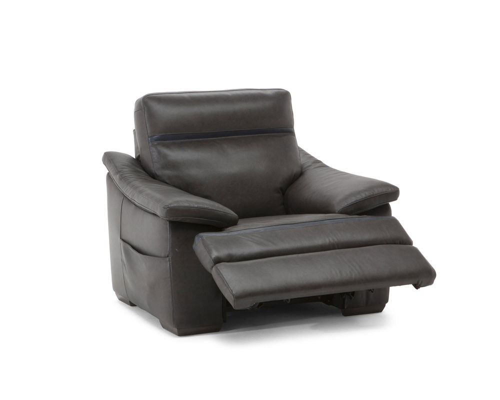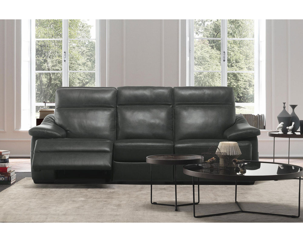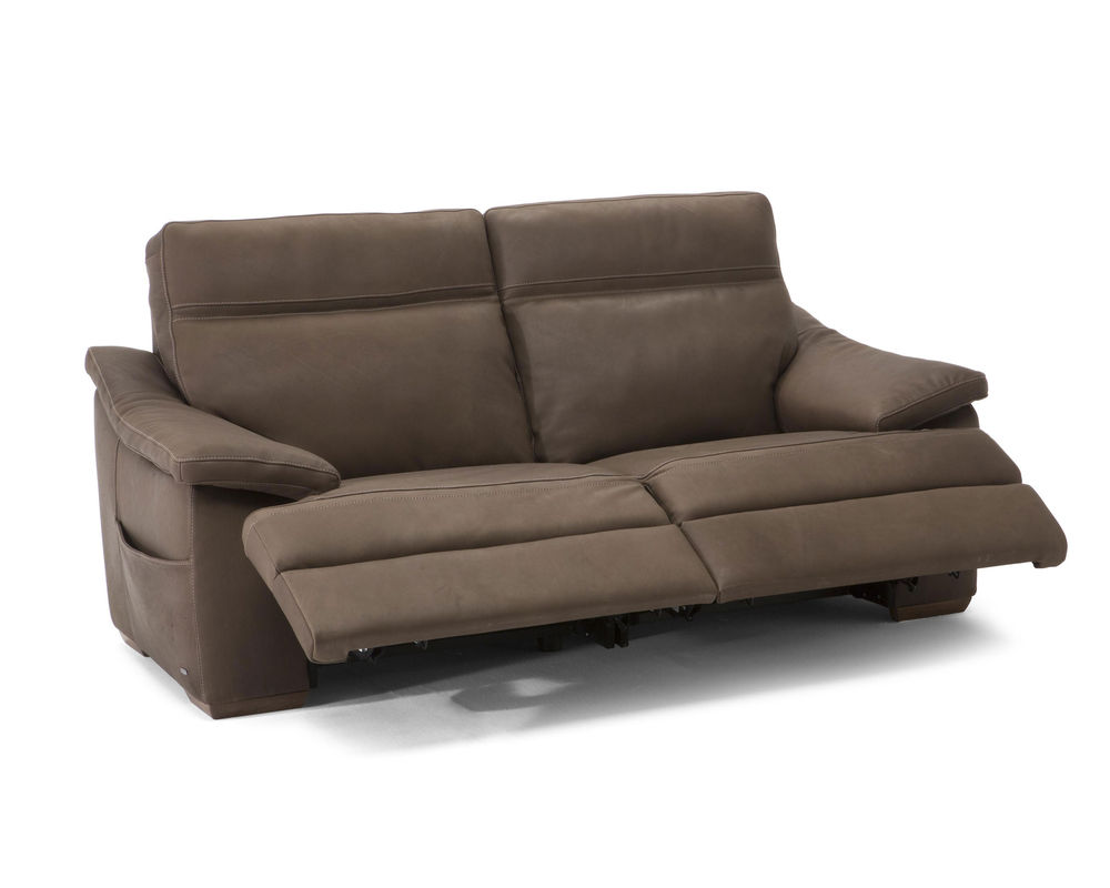 Enjoy the ultimate blend between style and comfort with the Pazienza C012 100% Top Grain Leather Reclining Sofa (With Power Headrest). The Reclining Sofa is a fully upholstered reclining sofa featuring 100 percent top-grain leather. This luxurious and sophisticated leather offers years of enjoyment as it ages gracefully along with the rest of the furniture. It is soft and supple and will become even more so as the years go on. Piping and contrast stitching to finish the solid wood-frame furnishing are added to the design. This Pazienza C012 Reclining Sofa has a power headrest that will allow you to move it with almost no effort to ensure your head and neck are supported no matter what activity you enjoy. It has arms that extend from the center of the back and slant down at a comfortable angle.