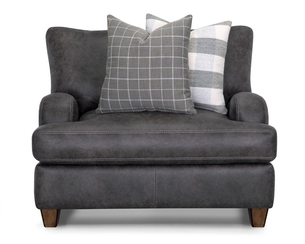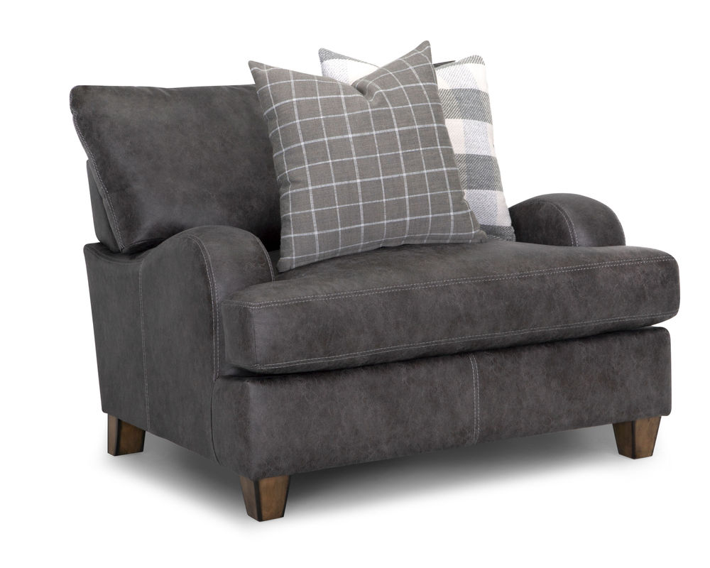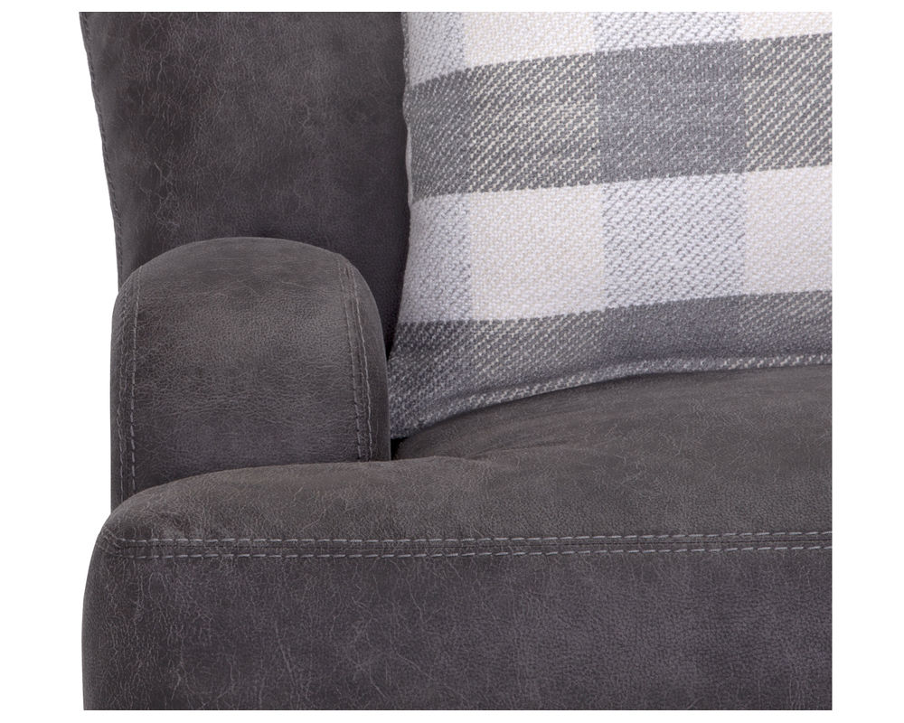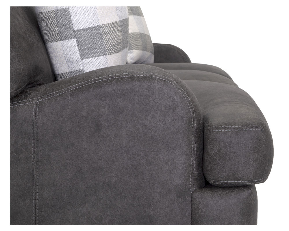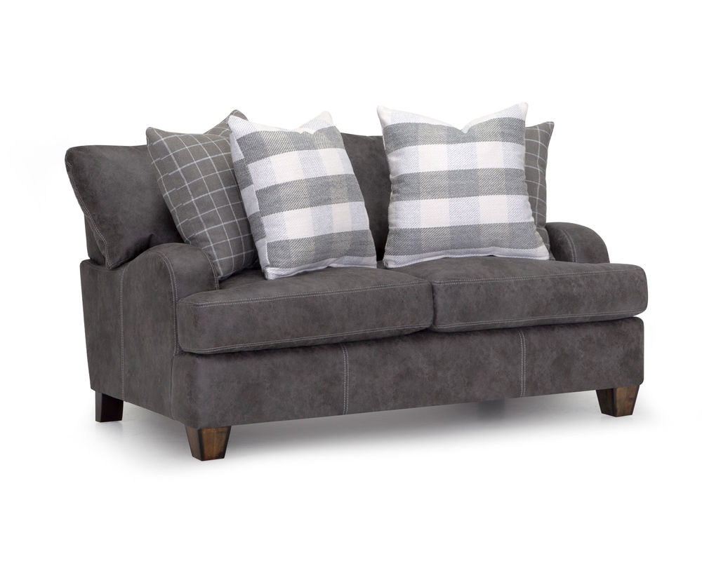 Introducing the stylish and versatile Darby 993 Sofa, designed to elevate your home with its modern farmhouse aesthetic. This stationary sofa group is upholstered in stunning Chief Charcoal color, adding a touch of sophistication to any living space. The plaid accenting throw pillows in shades of gray provide a charming contrast and add a cozy and inviting touch to the overall design.