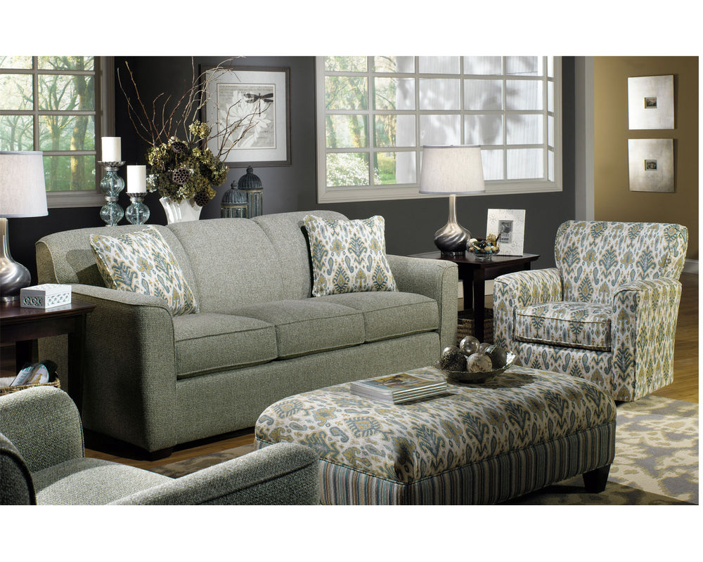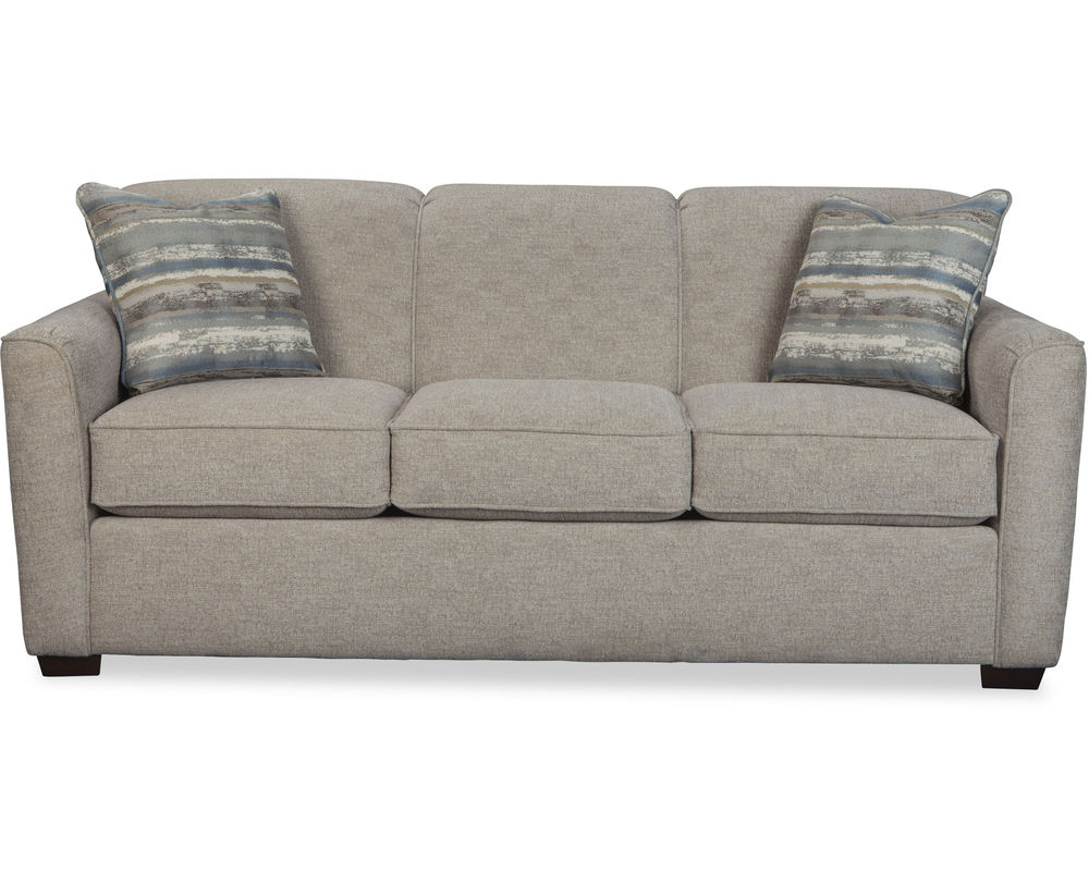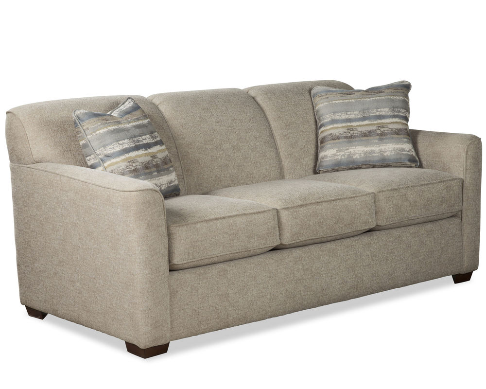 The Rosie 7255 Sofa is the perfect addition to any home. With its casual modern styling and easy-to-live-with features, this sofa is sure to be a hit. Its drawstring back provides an extra element of comfort and support while the unique welting on the arms adds a touch of sophistication. The classic 3-seat configuration and modern wedge feet complete the inviting look. To complete the look, a matching loveseat, chair, ottoman, and queen sleeper are also available, allowing you to customize your space. You'll love the comfort and style this sofa brings to your home.