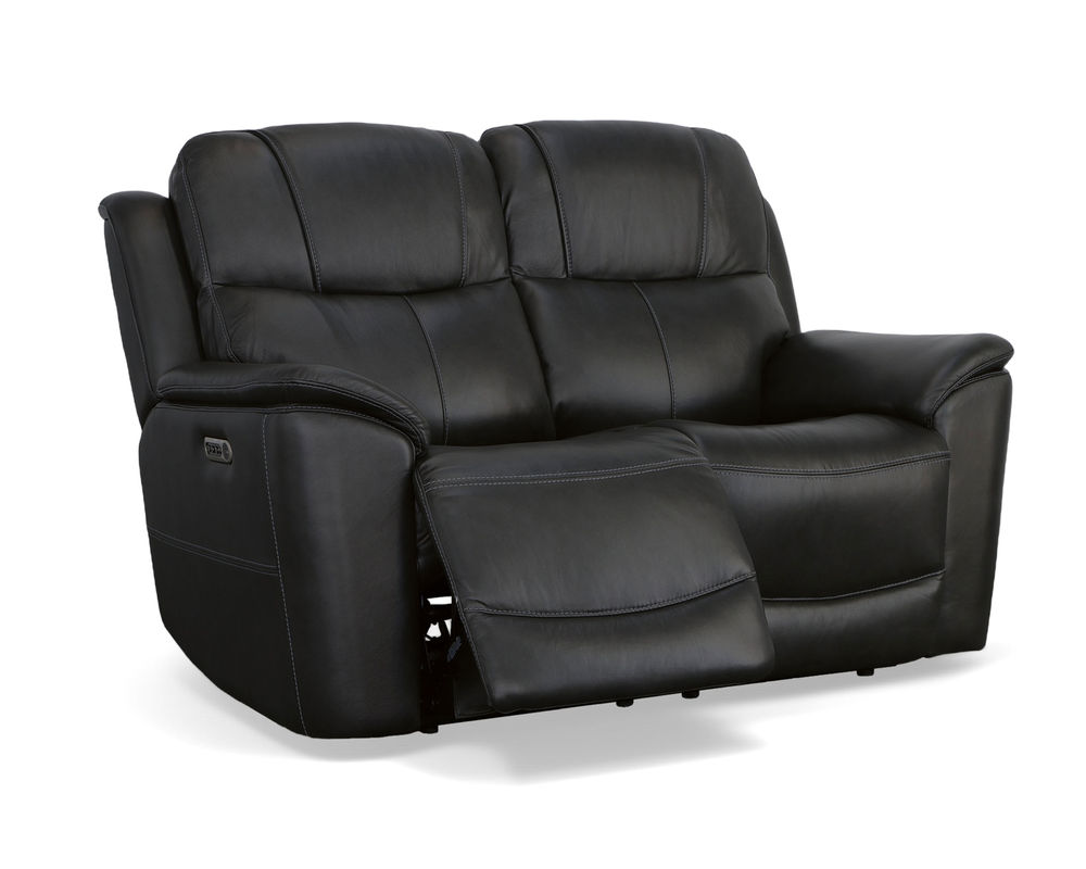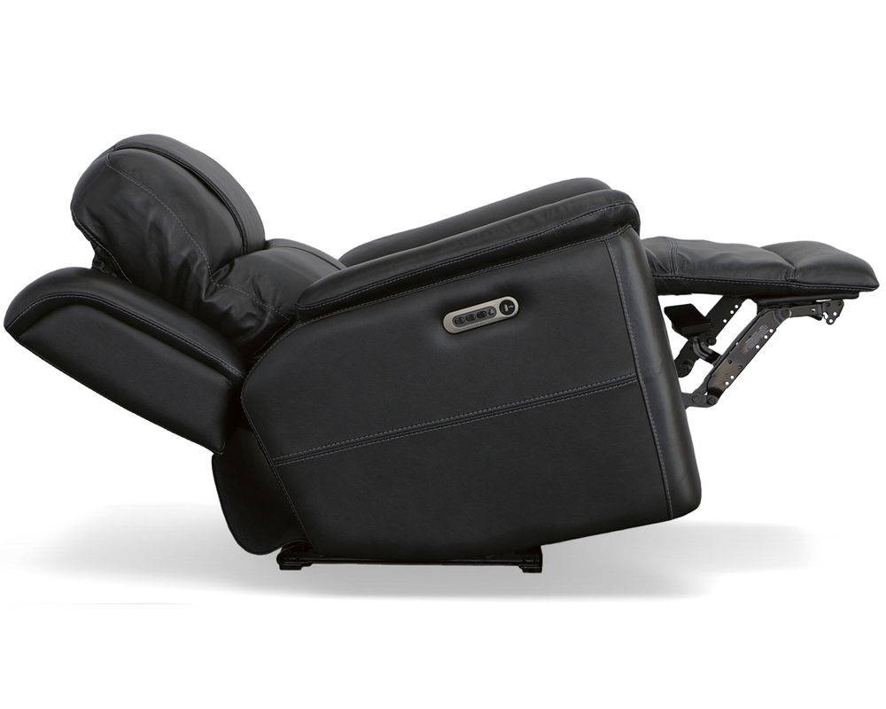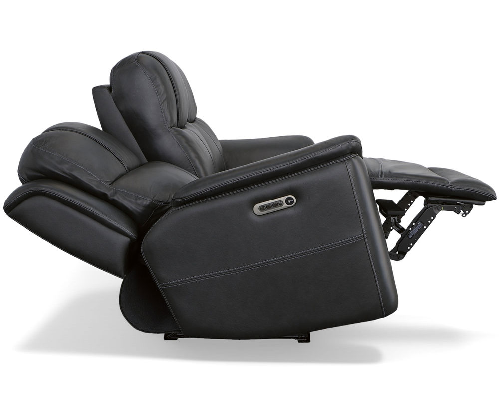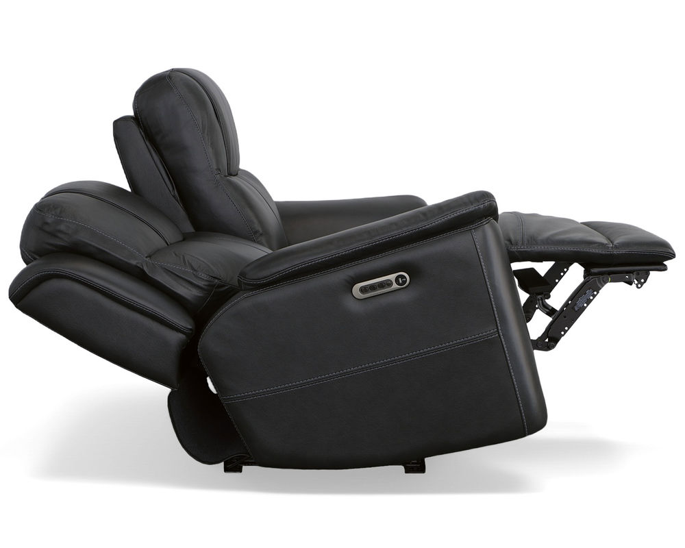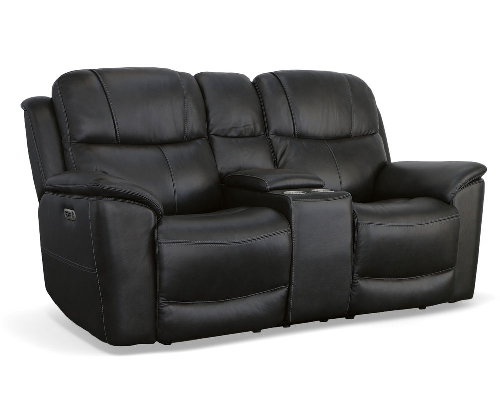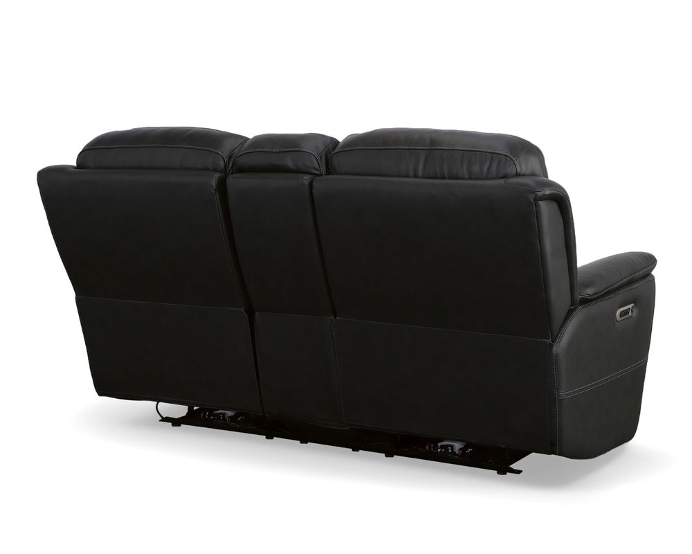 The Flexsteel Crew 1783 Power Reclining Console Loveseat provides superior ergonomics and plush comfort for your home. With its triple power functionality, you can independently adjust the headrests, and lumbar support and recline for maximum comfort. The Zero Gravity feature reduces tension and pressure on your body, while the pad-over armrests, waterfall chaise footrests, thin layered headrests, and divided back cushions provide reliable comfort all day. This loveseat also has convenient USB ports for charging mobile devices and a center storage console for keeping remotes and beverages nearby. The Flexsteel Crew 1783 Power Reclining Console Loveseat is upholstered in top-grain leather for exceptional beauty and durability and is available in two color choices. Enjoy a marathon movie night with this luxuriously comfortable and ergonomic loveseat.