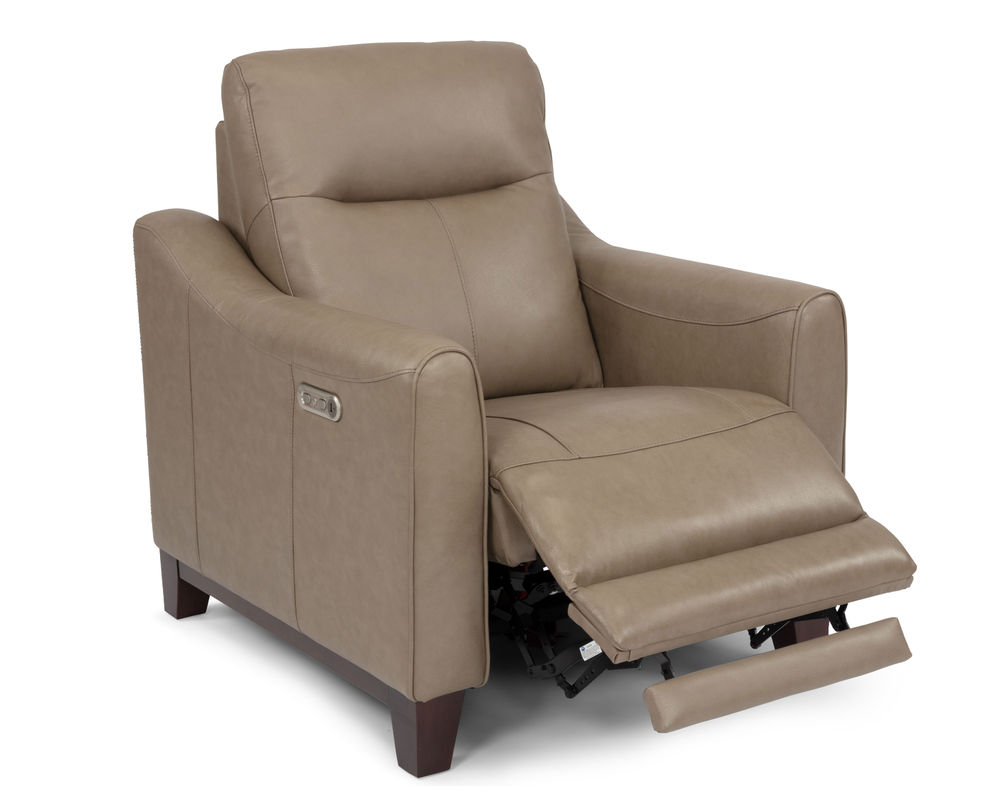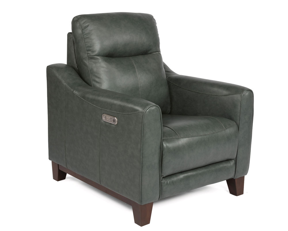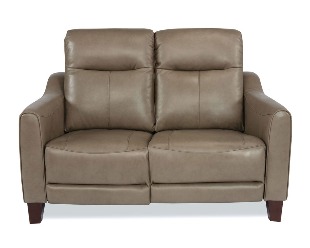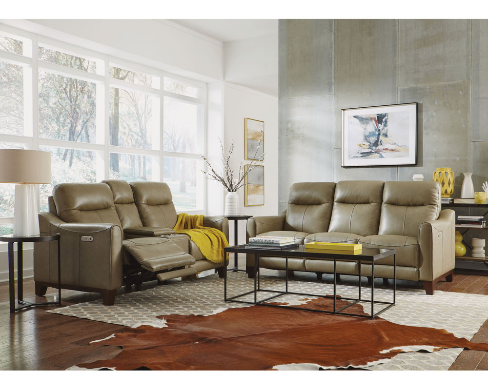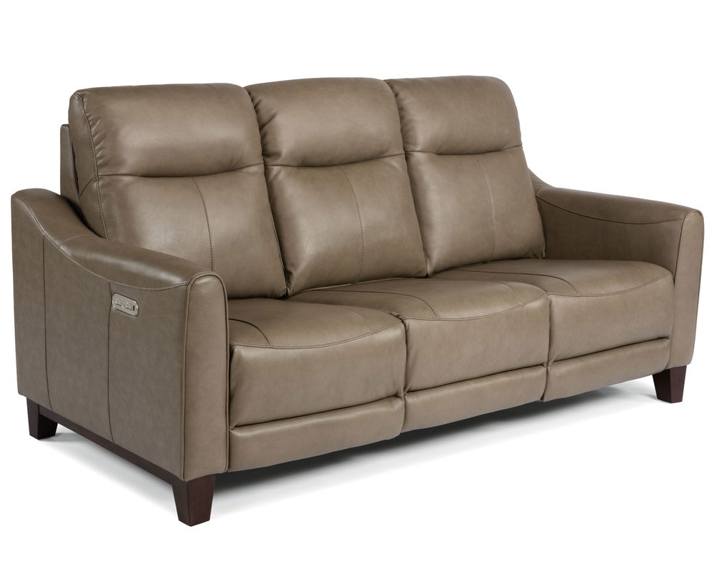 Keep all the essentials for a fun night in close at hand with the Forte Power Reclining Loveseat with Console and Power Headrests. The loveseat's convenient storage console with beverage holders offers plenty of space to house remotes and personal items. Both people sitting can personalize their experience with an easy-to-access power control that independently adjusts the recline and headrests. With convenient USB charging ports built into the controls, you won't have to worry about keeping devices powered up. Enjoy all these comfort-enhancing features-and get the look of sophisticated stationary seating-with design details including tapered wood legs that sit higher off the ground and saddle-stitched soft track arms. Rounding out this loveseat's premium features is our patented Flexsteel DualFlex Spring System™, which offers a mix of firmness and flexibility as you sit. Choose from two options of our premium leather upholstery for a design that elevates any space.