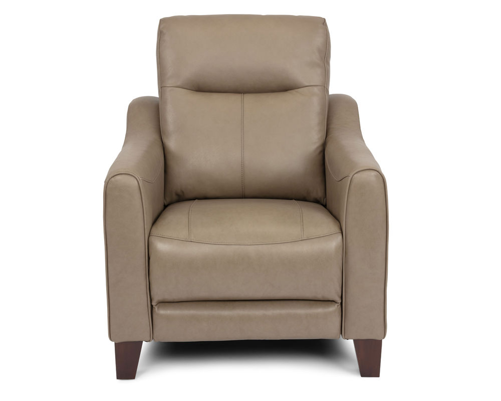 • Elevated design features, including tapered wood legs that sit higher off the and saddle stitching, provide a tailored stationary look