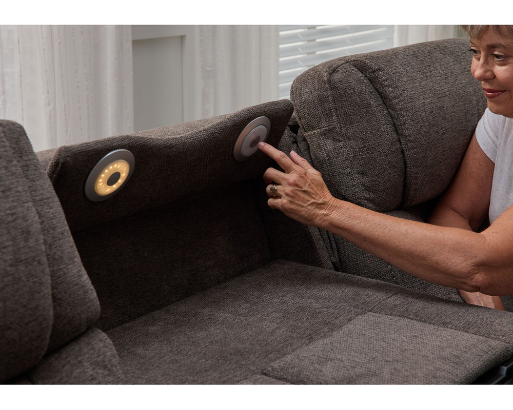 But the Zofa doesn't stop there. It also includes motion-sensitive LED base lighting, adding a touch of modernity and sophistication to your living space. With built-in USB ports and a wireless charging pad, you can keep all your devices powered up and within reach while you unwind on the Zofa.