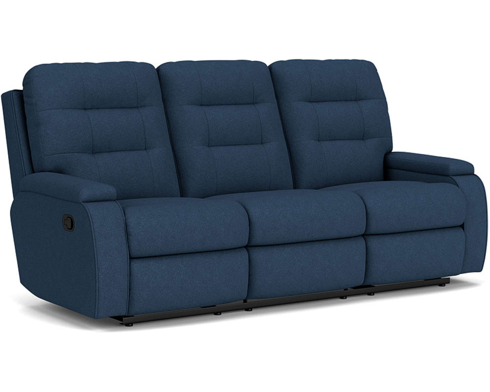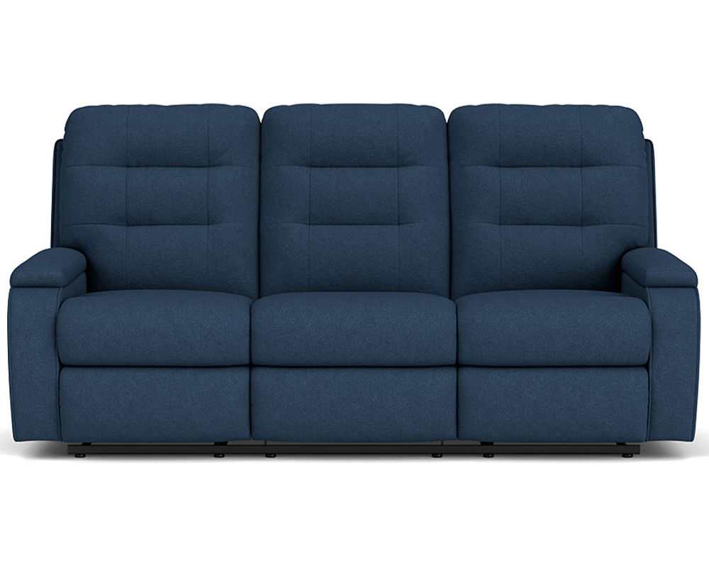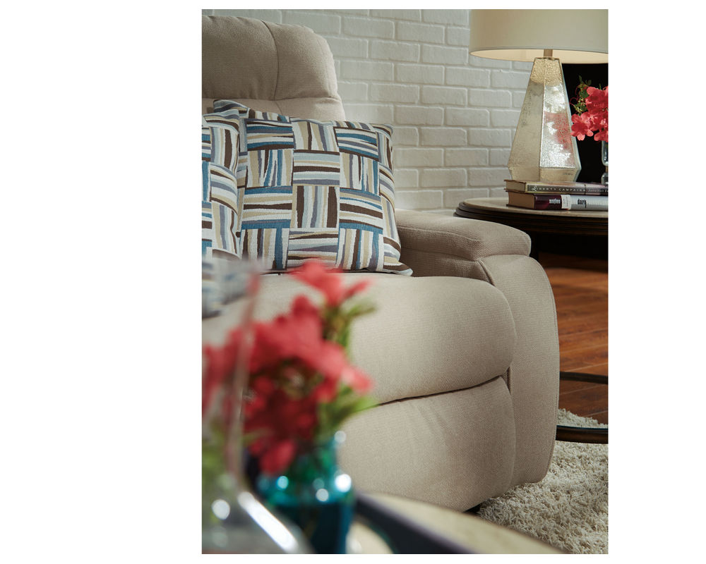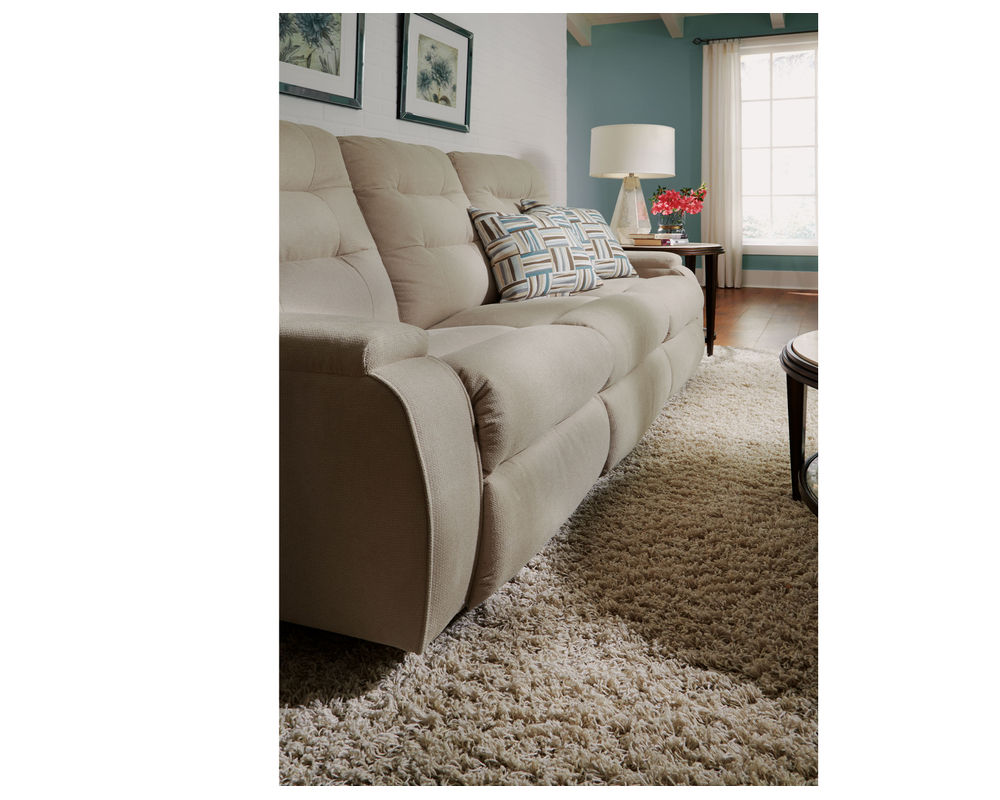 The Kerrie Reclining Sofa is the epitome of comfort and style. With its curved arm and fully padded footrest, the sofa provides superior comfort and support. Its tufted back adds a contemporary flair to this exquisite piece. For added convenience, the reclining mechanism allows you to effortlessly adjust the angle of the sofa from an upright to a fully reclined position. The Kerrie Reclining Sofa will bring first-class comfort and style to your home. Power recline options are available. Over 200 fabrics are available.