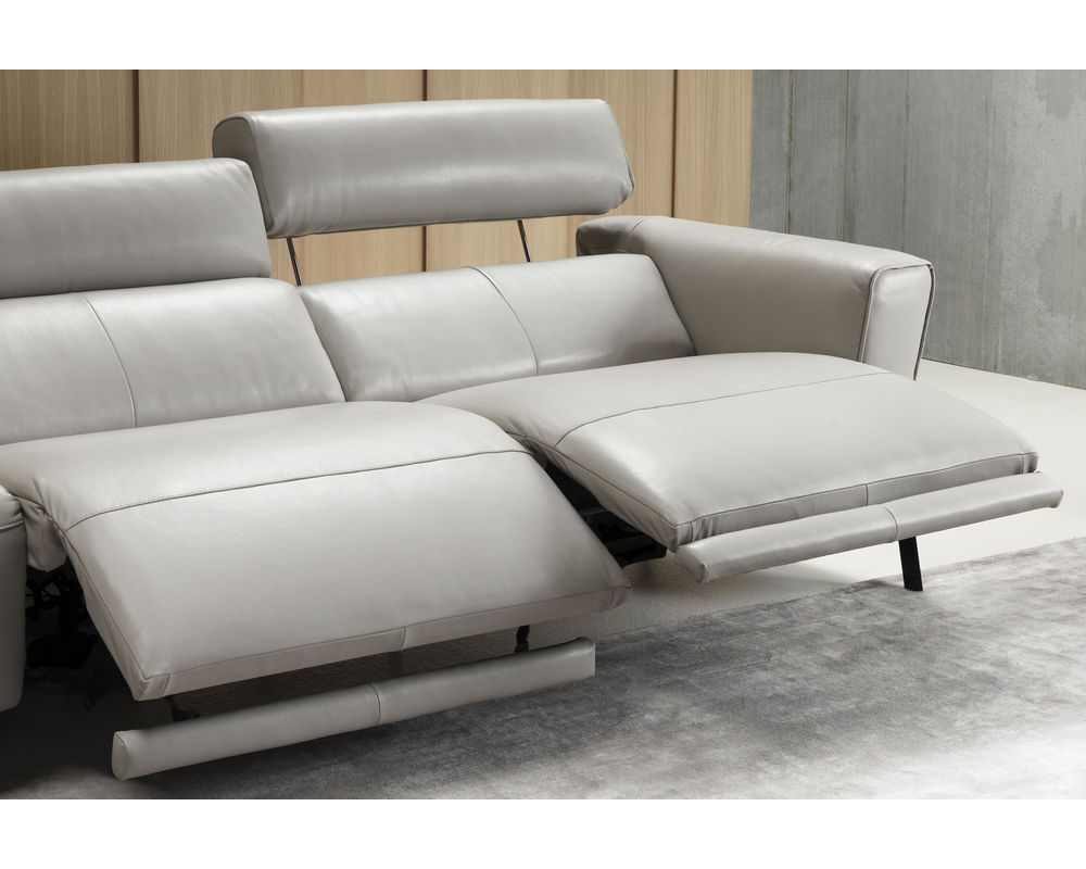 The Eleganza reclining sofa boasts a sleek and modern design, with its metal feet that add a touch of elegance and provide stability. The expertly quilted seat adds a touch of refinement and elegance to the overall design, making it a perfect addition to any contemporary or traditional home decor.