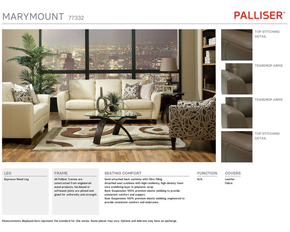 • All Palliser suspension is chosen with care to complement each specific style and provide long-lasting comfort and support. • Seat suspension features interwoven 100% premium elastic webbing, engineered to provide consistent comfort and endurance