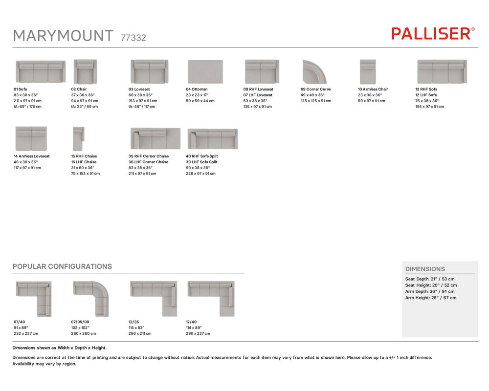 That's not all - the Marymount 77332 sofa offers a wide range of over 200 top-performance fabric and leather options. This variety empowers you to choose the perfect material and color that best suits your decor and style, making it a truly personalized addition to your home.