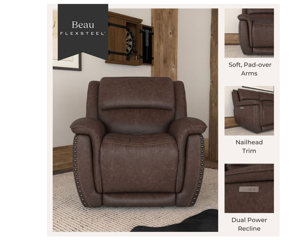 The Beau 1011 Power Reclining Sofa is a beautiful, traditional-style piece of furniture that is enhanced with modern features and ergonomics. This sofa features striking nailhead trim and flange-edge stitching detail, making it a timeless design statement that looks great in both modern farmhouse living rooms and rustic man caves.