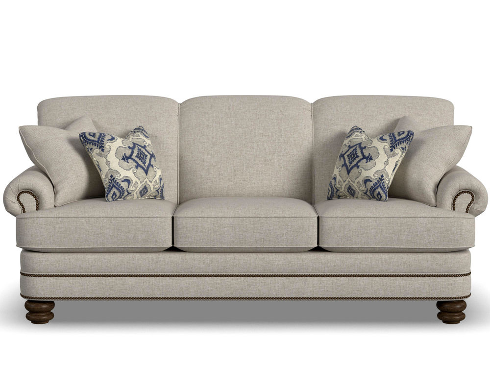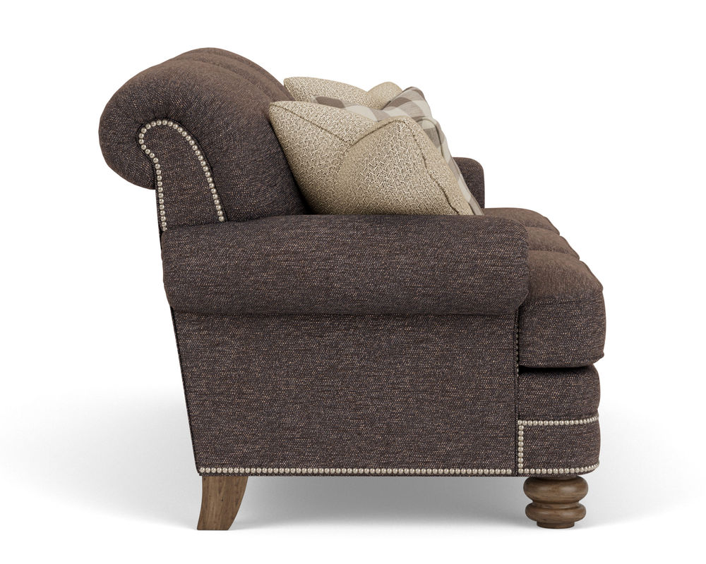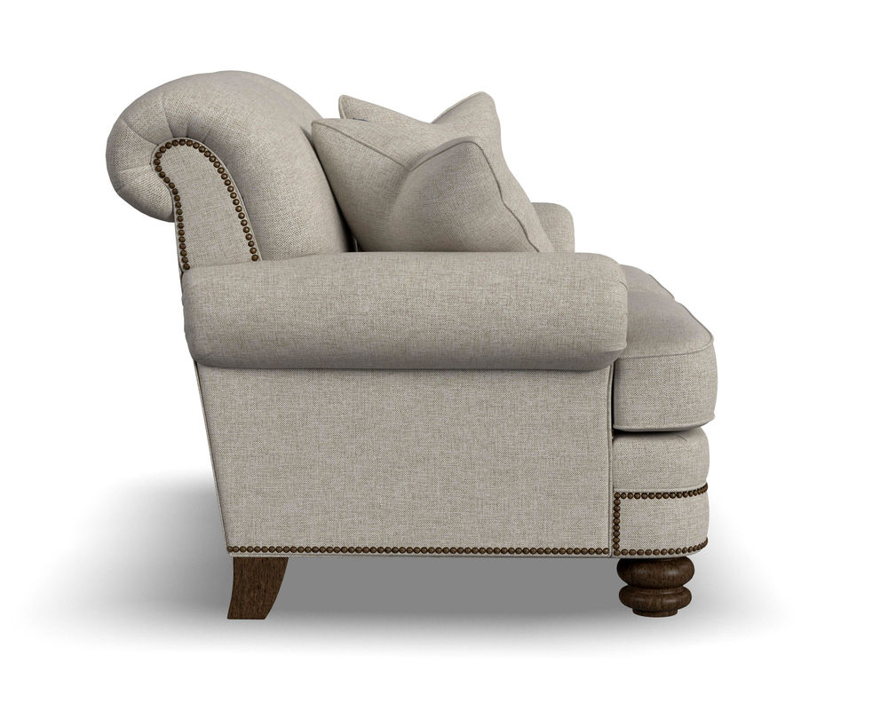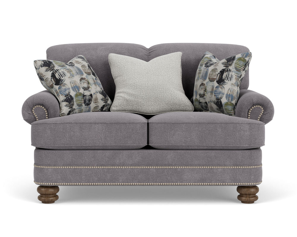 This Flexsteel Bay Bridge 7791 Nailhead Loveseat is the perfect blend of classic and contemporary style. With softly styled details, this loveseat is sure to become a treasured piece of furniture. It features tightly rolled arms, a rounded front rail, back and side panels lined with a welt cord, and round bun feet, creating an heirloom look. It also comes with a choice of over 100 high-performance and standard fabrics. With free shipping included, this loveseat is a great value. For an added touch of sophistication, nailhead trim is included. This loveseat is sure to bring timeless style to any home.