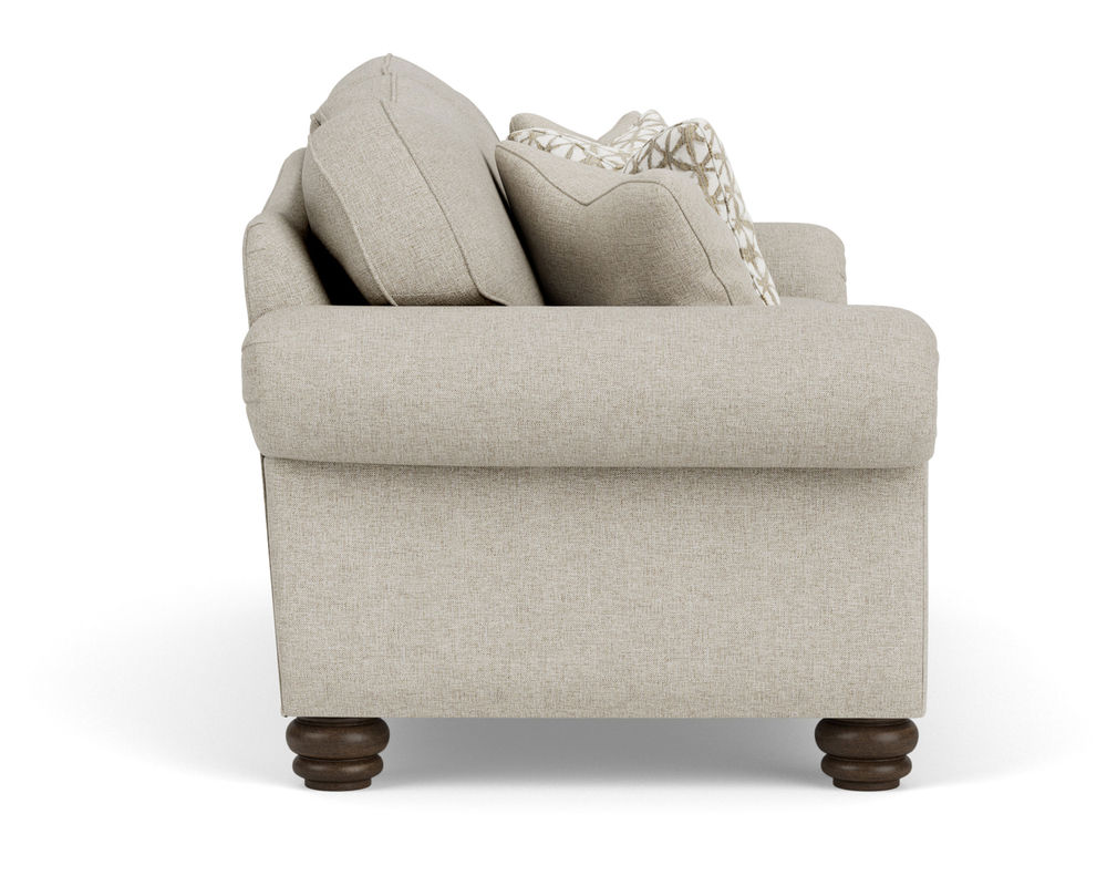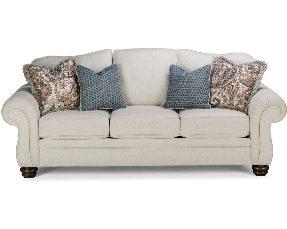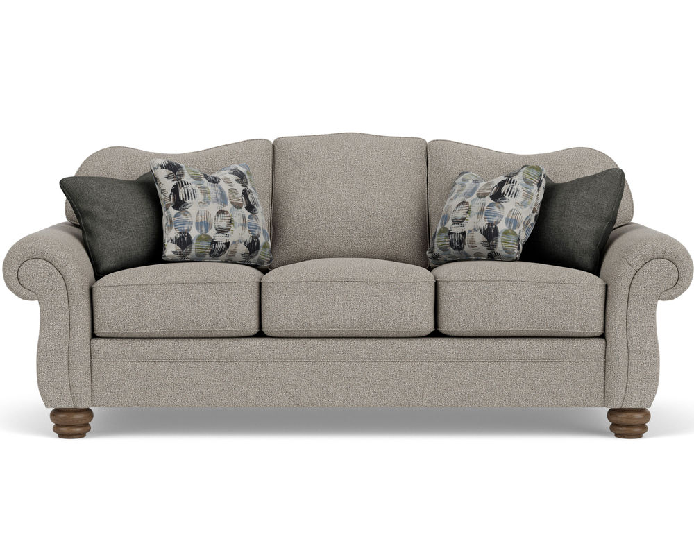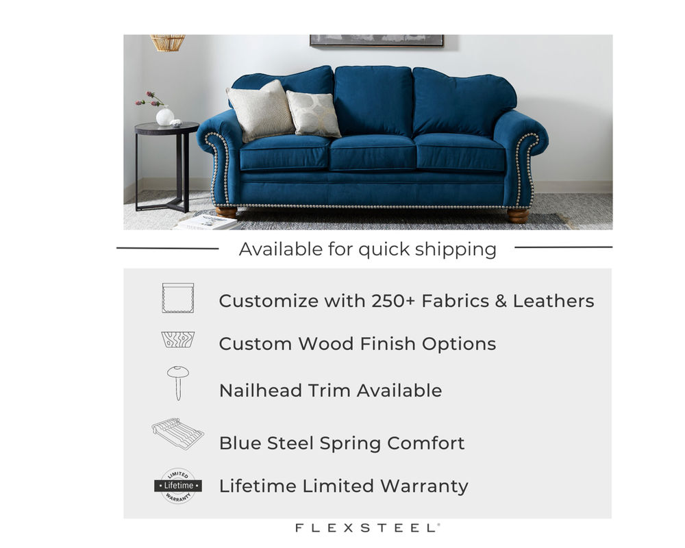 The Flexsteel Bexley 8646 Sofa provides the best of both worlds: classic style and modern comfort. It features a timelessly elegant frame with an arching back, generously padded rolled arms, and ornate bun feet. But it also provides superior comfort with its plush cushions and superior construction. Optional nailhead trim adds an extra touch of sophistication. With over 100 performance and standard fabrics to choose from, you can create a look that's truly unique. Enjoy the ageless comfort of the Flexsteel Bexley 8646 Sofa for years to come.