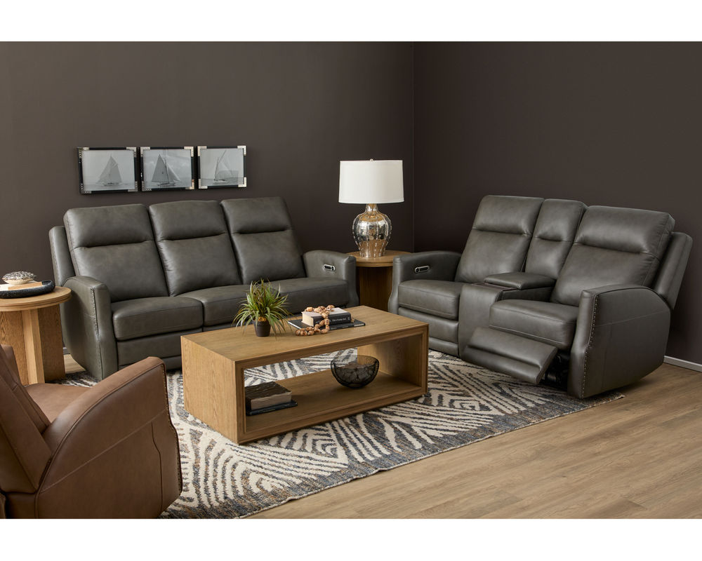 From Sofas and Sectionals.com—Introducing the ultimate relaxation experience with the Maxwell 1585 Triple Power Reclining Console Loveseat. This luxurious piece offers unparalleled comfort and convenience, making it the perfect addition to your living room or home theater.