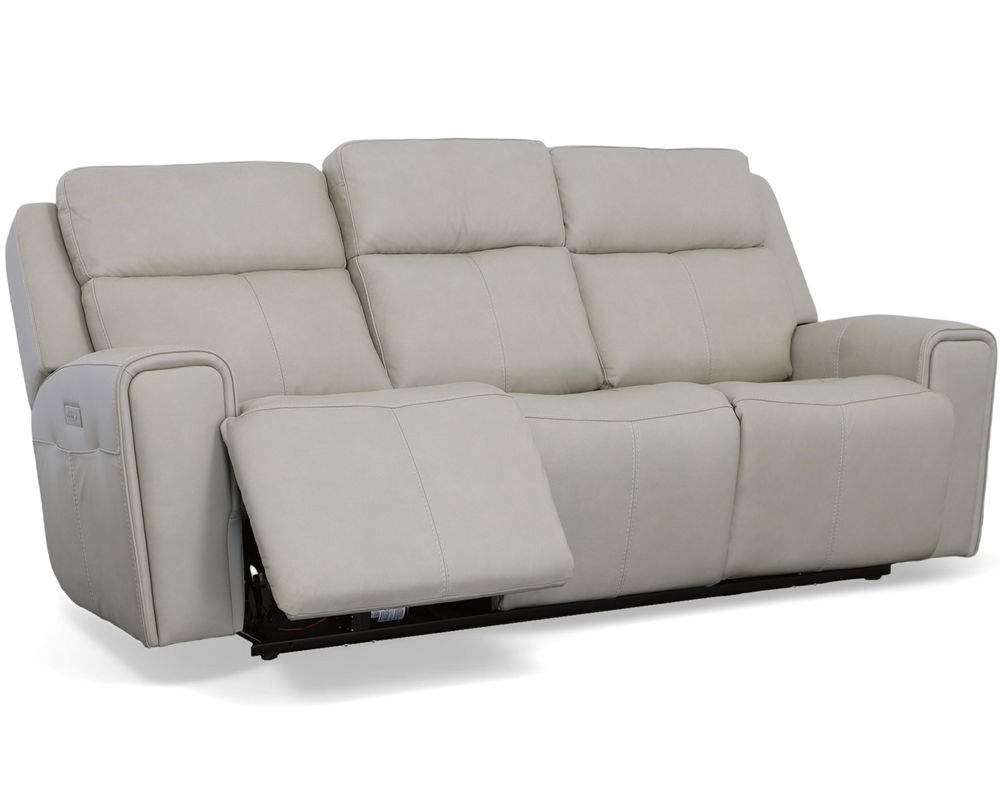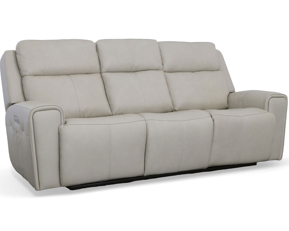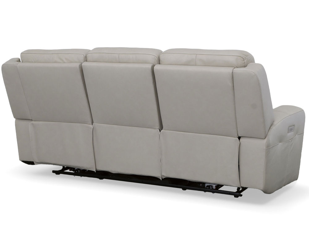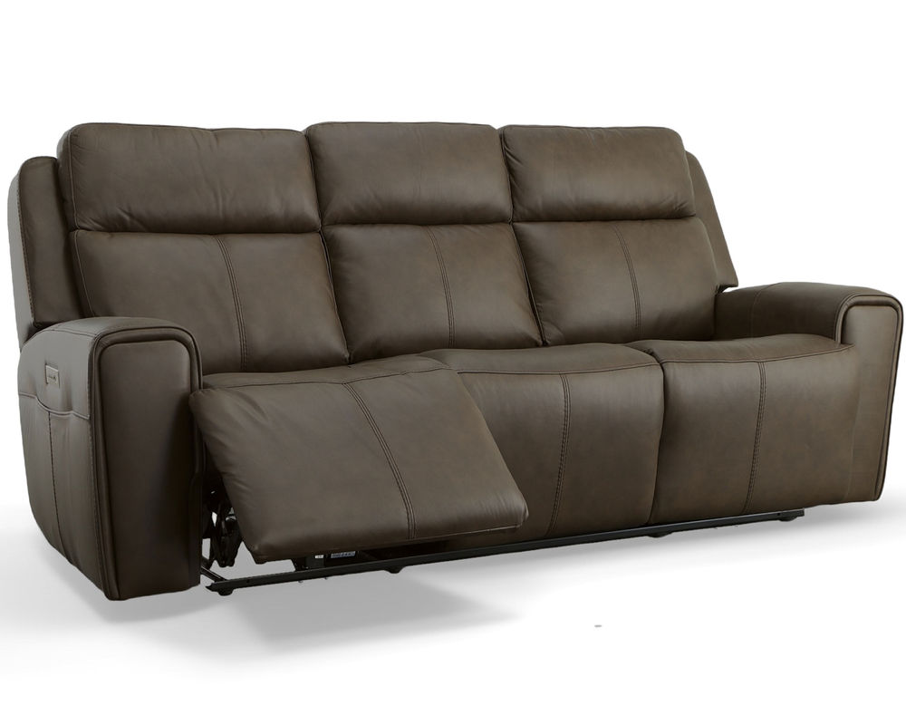 The Flexsteel Barnett 1601 Reclining Sofa is the perfect piece for the whole family to relax and enjoy together. With its Zero Gravity recline technology, everyone can experience a feeling of weightlessness while lounging. Both sides of the sofa come equipped with power controls to independently adjust the recline, headrests, and lumbar, making it easy to find that just-right level of comfort. For added convenience, a USB port in the power control lets you charge devices without ever having to get up, and side pockets keep remotes within reach. Comfort is further enhanced with ergonomic details like generously scaled and contoured seats and waterfall chaise pads that relieve pressure from the legs and back. Plus, wide track arms with durable top-stitching and eye-catching welt trim make this reclining sofa a stylish addition to any room. Premium top-grain leather everywhere your body touches.
