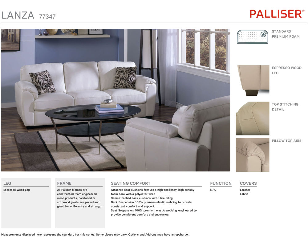 The Lanza 77347 Sofa, a masterpiece of comfort and support, features a generous pillow-top arm and T-shaped back cushion. The super soft fiber-filled back cushions create a pillow-like softness that makes you want to snuggle in all day. The comfortable yet supportive seat ensures you can sink in and relax without compromising your posture. With this sofa, you can be confident that your comfort is our top priority.