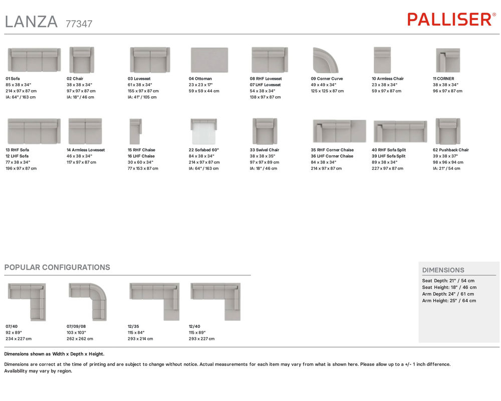 The Palliser warranty does not cover any damages due to improper use, excessive soiling, improper or unapproved cleaning methods (see Product Care for details), chemical treatments, exposure to direct sunlight or colour fading. These instances will void the warranty.