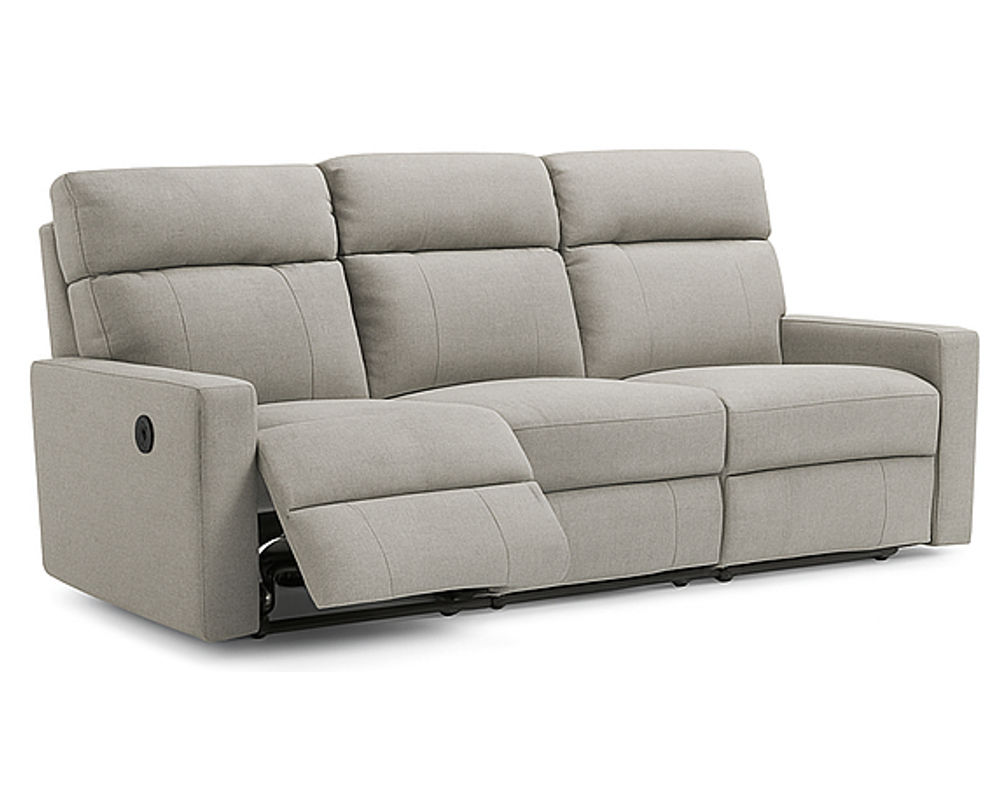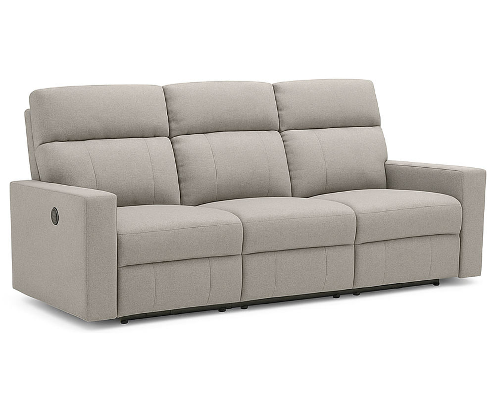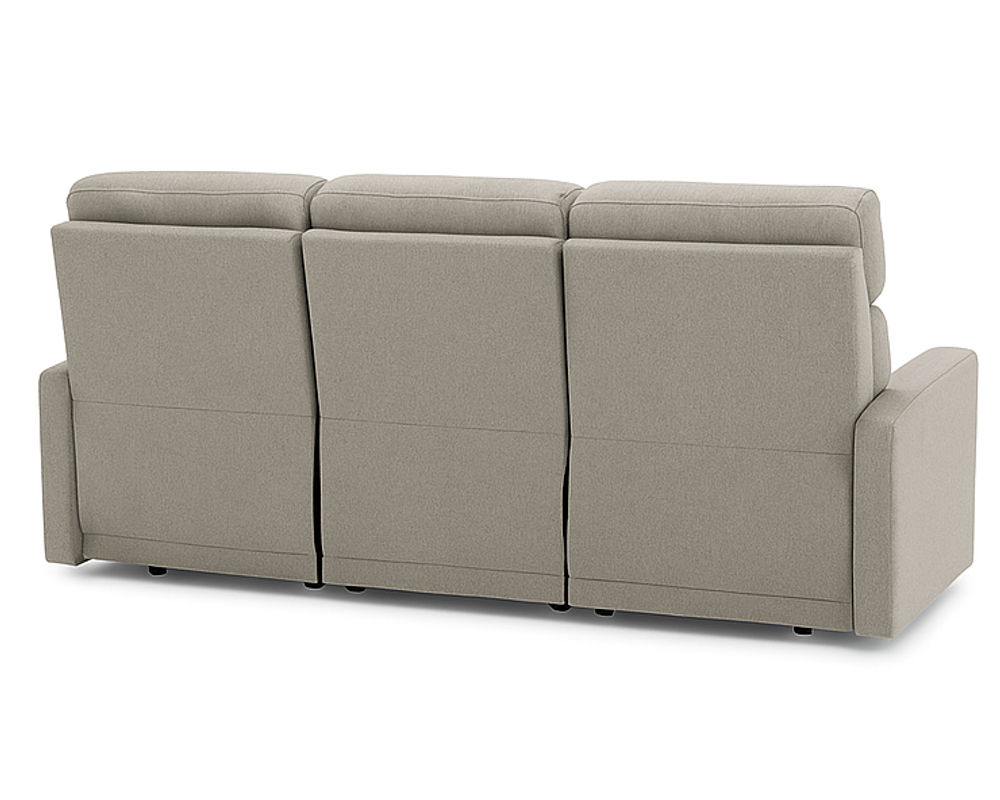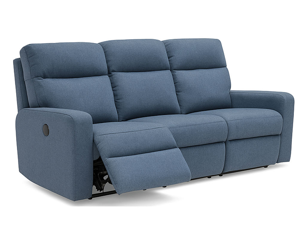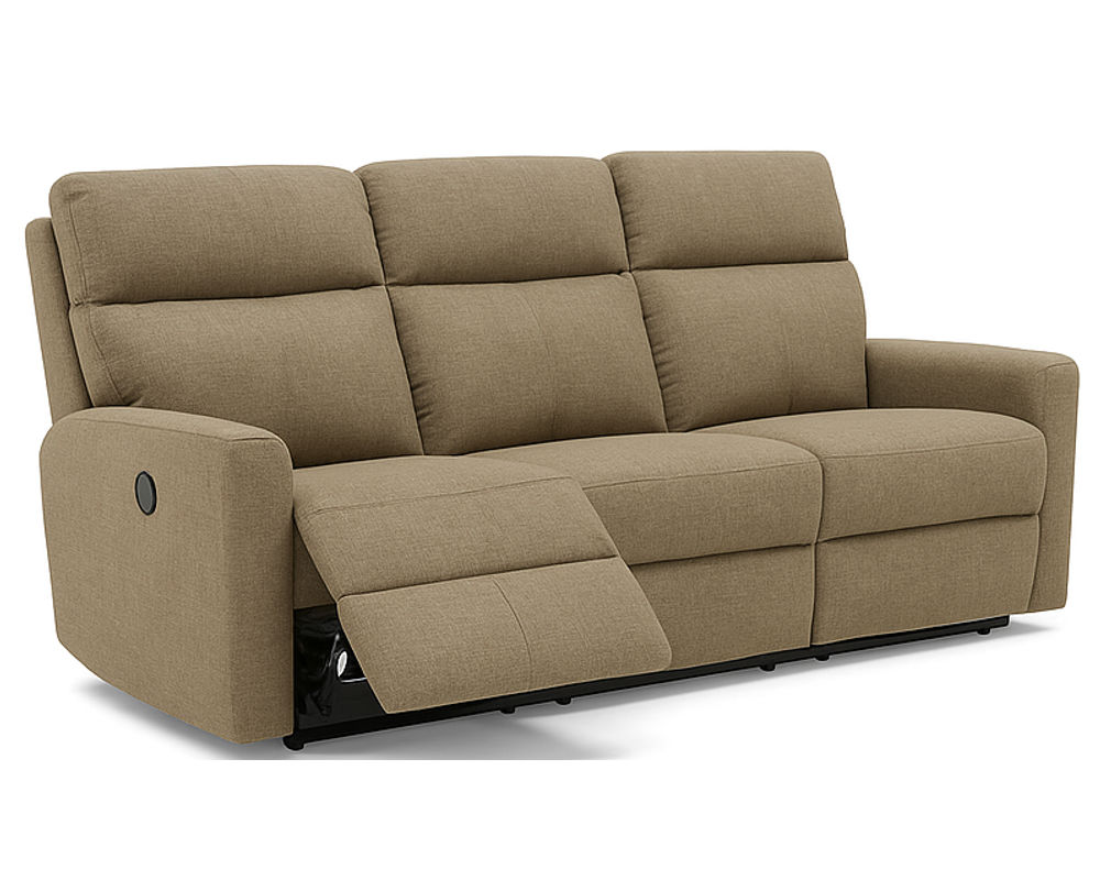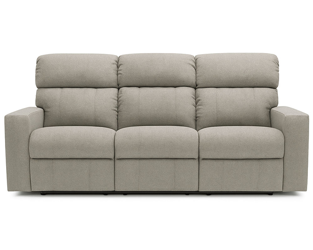 The Palliser Oakwood Reclining Sofa is designed for comfort and convenience. Its three-over-three cushion style allows three people to recline and relax on each portion of the couch. The track arms that frame these cushions house the toggle power recline mechanism, making reclining as easy as pressing a button.