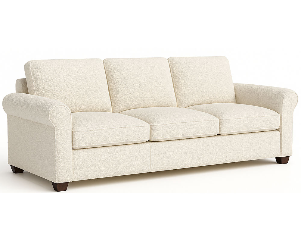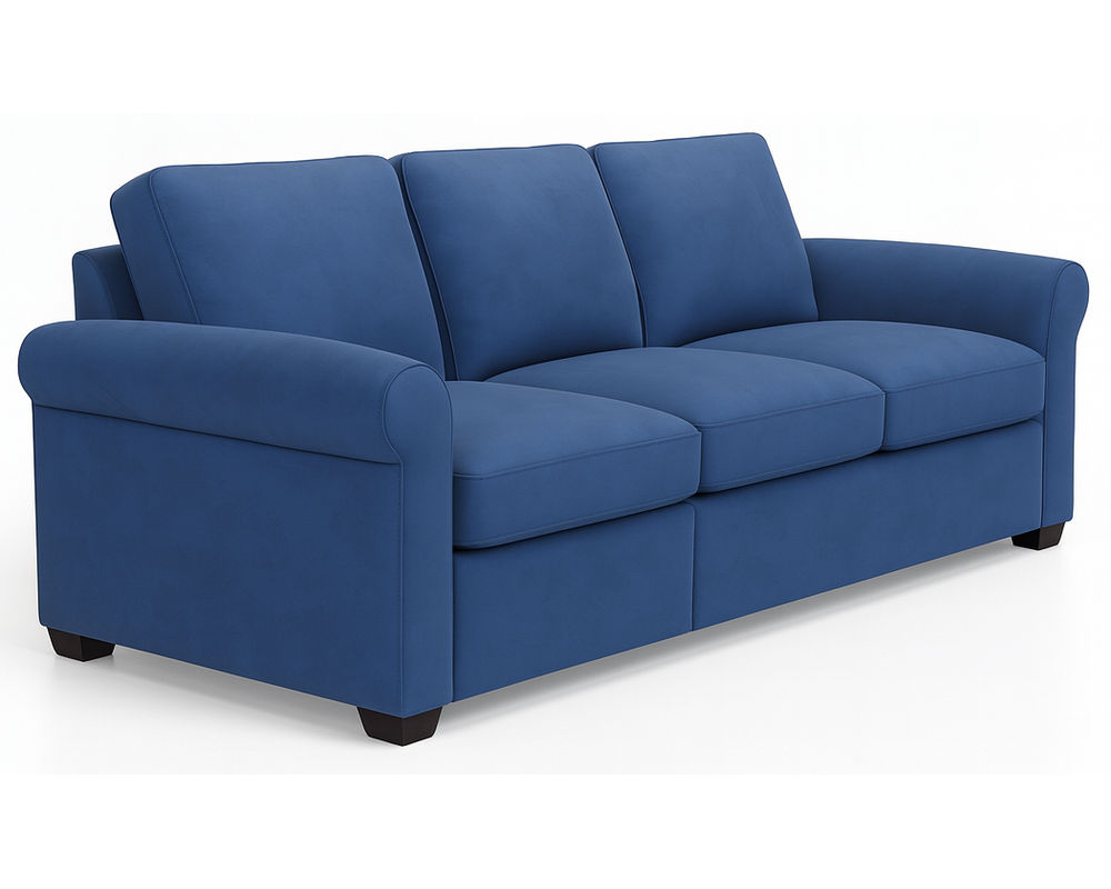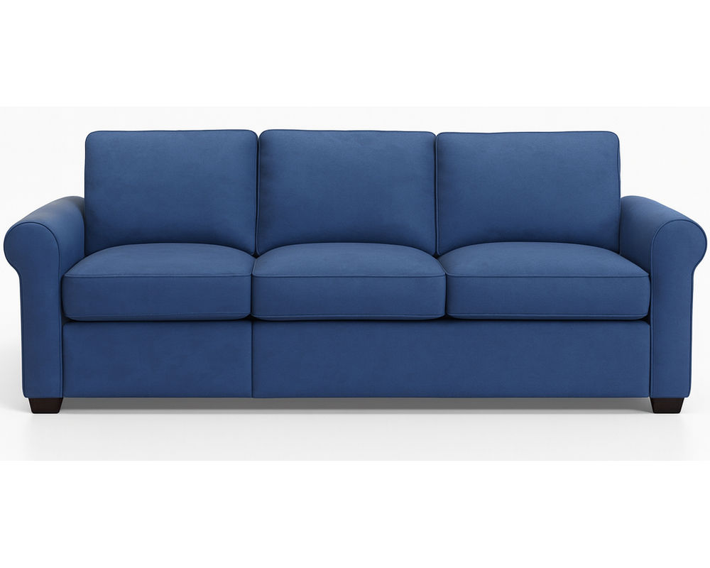 Introducing the Madison 77679 Roll Arm Sofa, the ultimate combination of classic style and modern comfort. This stunning sofa is designed with updated proportions and features espresso wood legs for a touch of elegance. The seat and back cushions are generously filled with extra down for the ultimate comfort and a slightly relaxed appearance.
