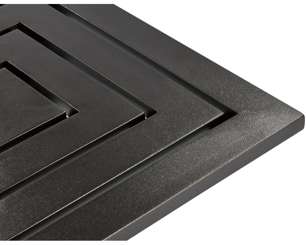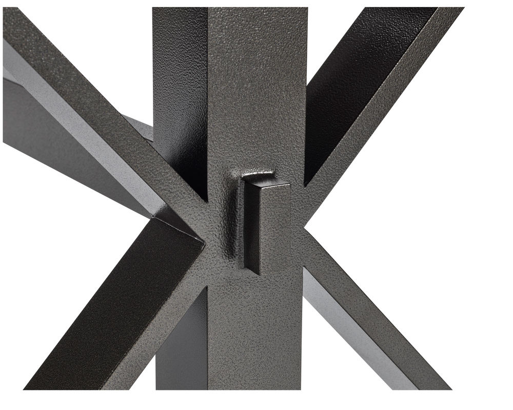 • FRAME: Constructed of weather-resistant tubular and cast premium powder-coated aluminum. • Trestle style base and slatted tops. Hand-rubbed powder coated finish. Seats 4. 1.875” Umbrella hole. Table has built in umbrella base. • FINISH: 608 Dark Bronze, as shown.