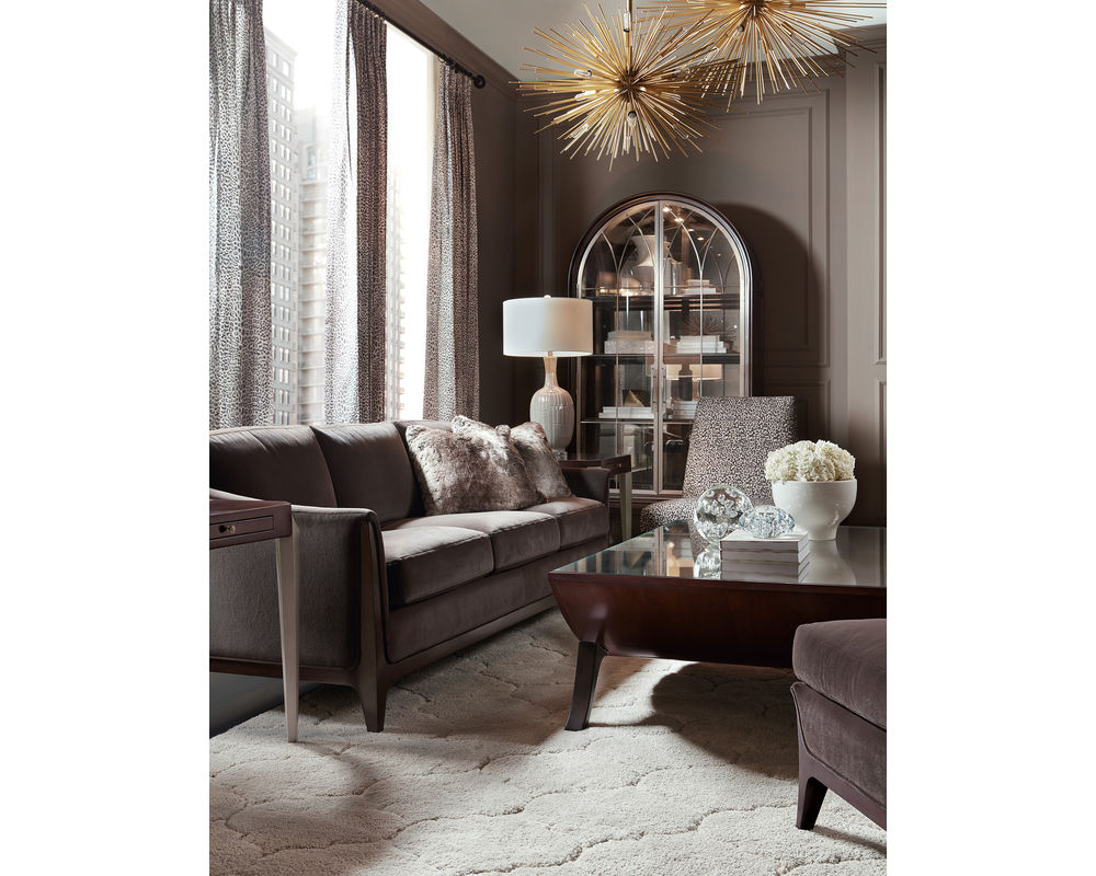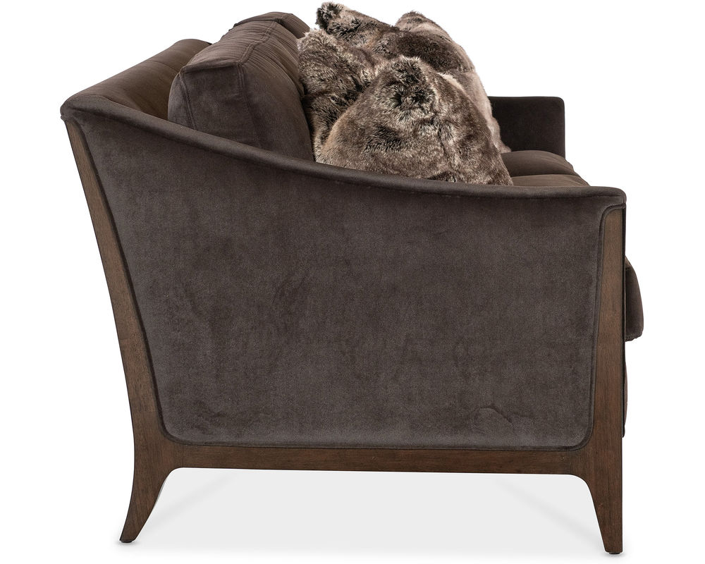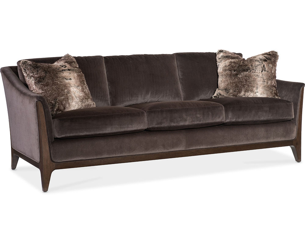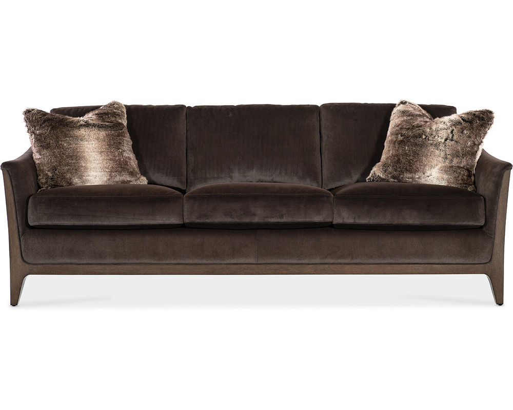 Bring timeless elegance and plush comfort to your living space with the Sophia Stationary Sofa from Hooker Furniture. Upholstered in soft Merrimac Mink fabric, this sofa exudes warmth and sophistication with its rich, velvety texture. A caviar-finished wood frame and legs add a refined touch, while topstitch and welt trim detailing enhance its tailored silhouette. Complete with two 19-inch accent pillows, the Sophia sofa is the perfect blend of style and comfort, ideal for both formal and casual settings.