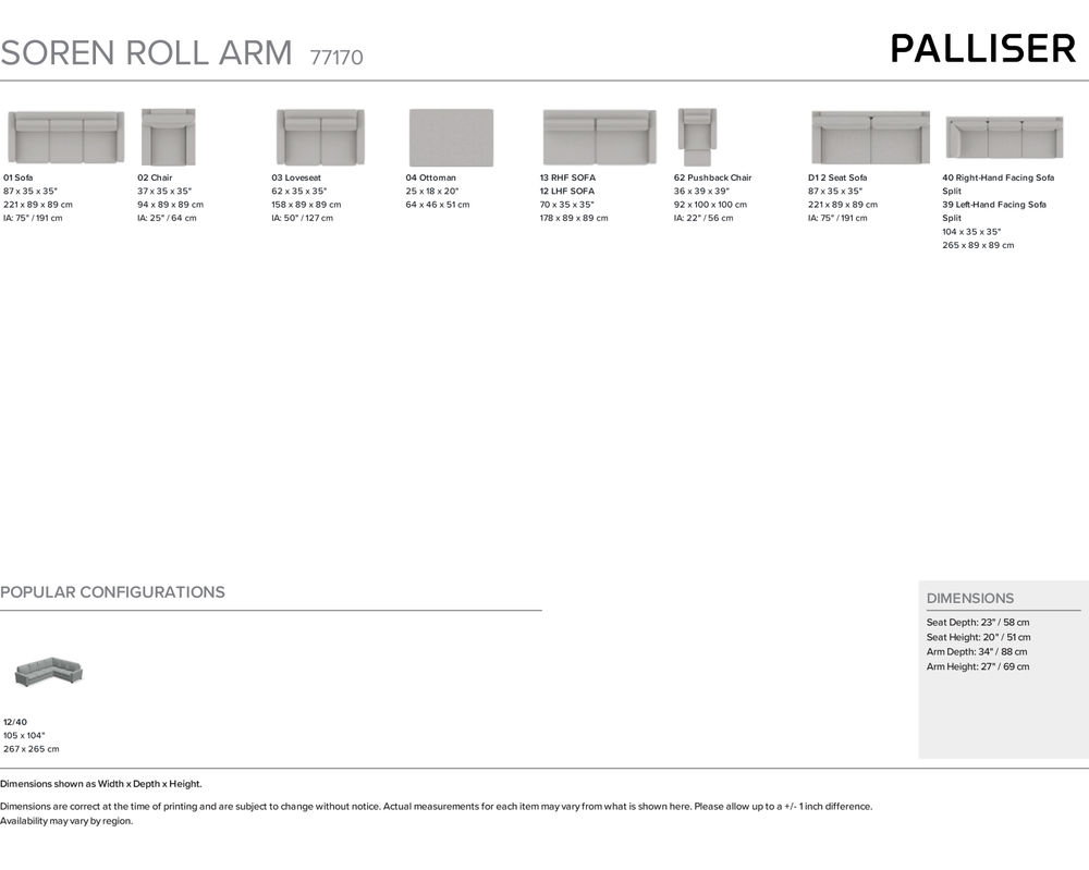 Introducing the Soren 77170 Pushback Recliner, a stunning piece of furniture that combines comfort and style. This recliner features a unique Soren Roll Arm design that exudes elegance and sophistication. The luxurious memory foam seats provide ultimate comfort, making it the perfect spot to relax and unwind after a long day.
