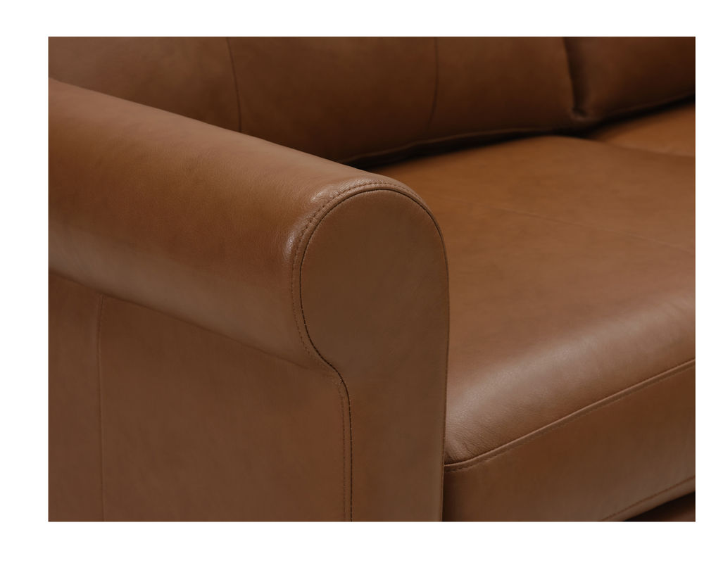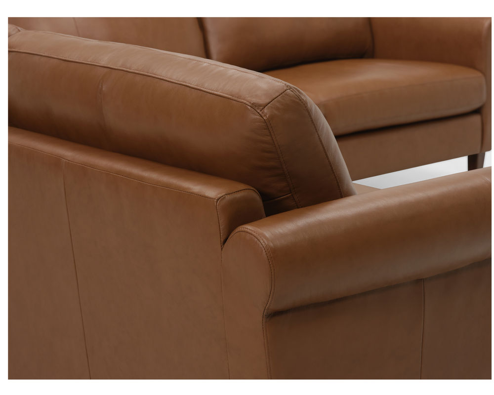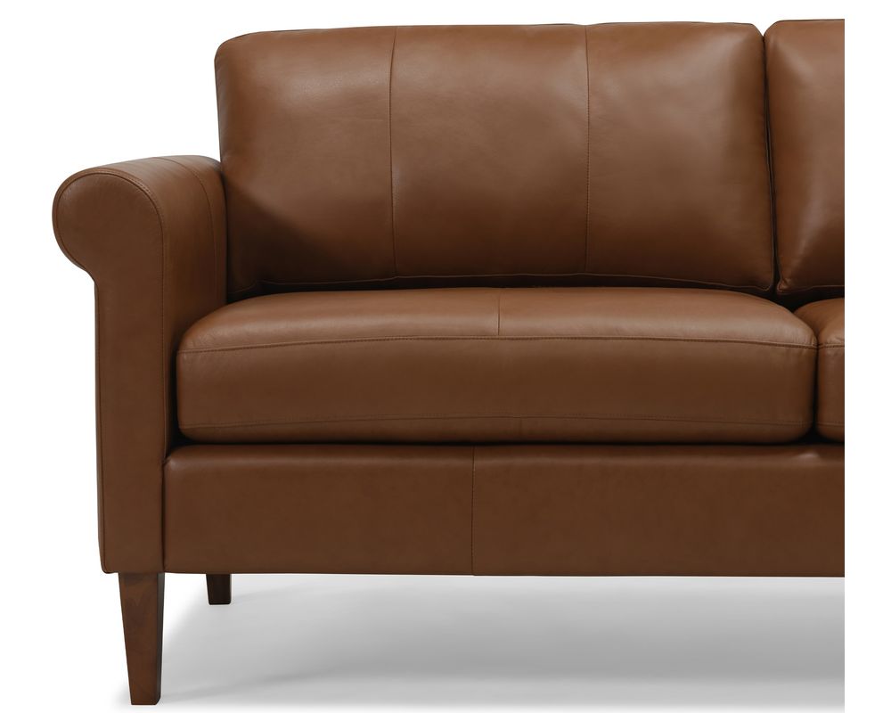 Introducing the Soren 77170 Sectional - the perfect blend of comfort, style, and sophistication. This sectional features a luxurious memory foam seat with unparalleled comfort and support. The high legs, finished in a rich cognac color, add a touch of elegance to the overall design. The Soren Roll Arm gives this sectional a slightly more formal look while maintaining an approachable feel. Plus, with its durable construction, you can be sure that this sectional will stand the test of time.