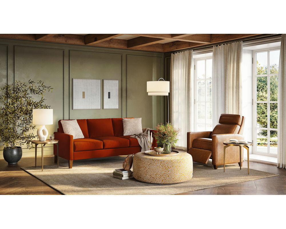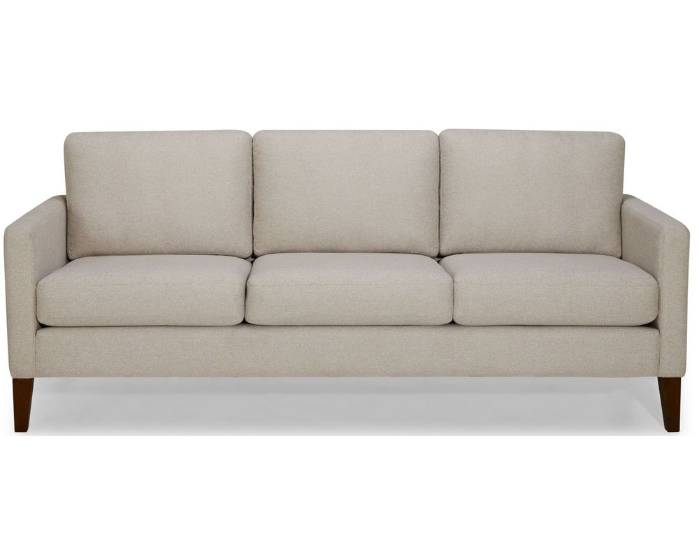 Introducing the Soren 77171 Sofa, a masterpiece of design and comfort. Its classic styling and proportions, along with the thin track arms and high two-sided tapered wooden legs in a beautiful cognac finish, create a visually light silhouette that will enhance any living space.