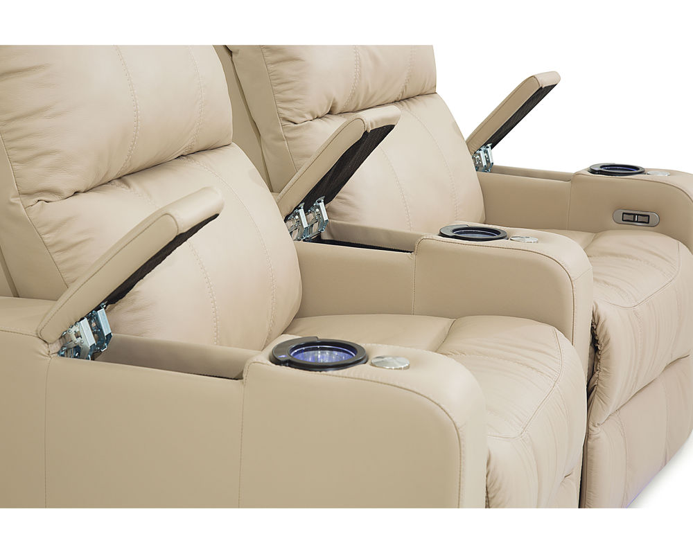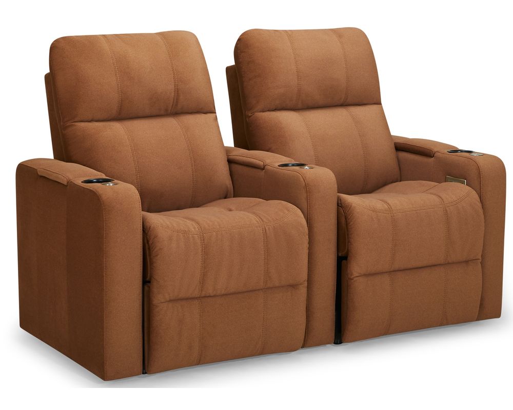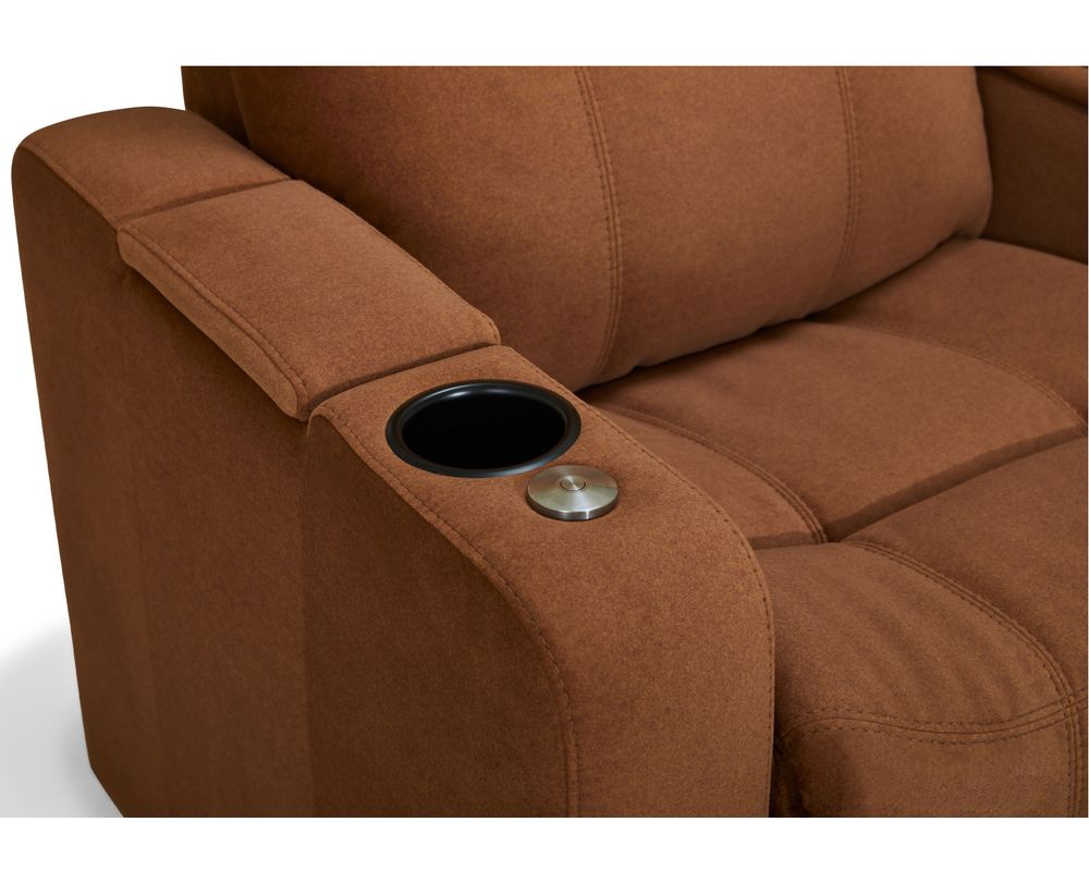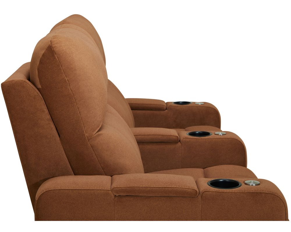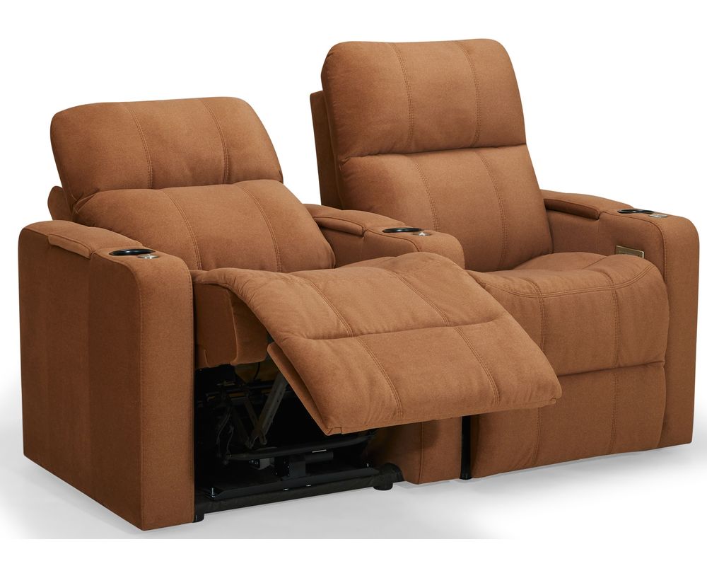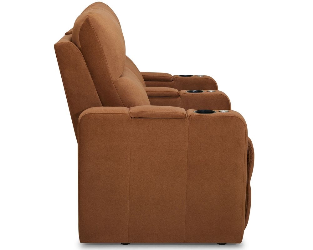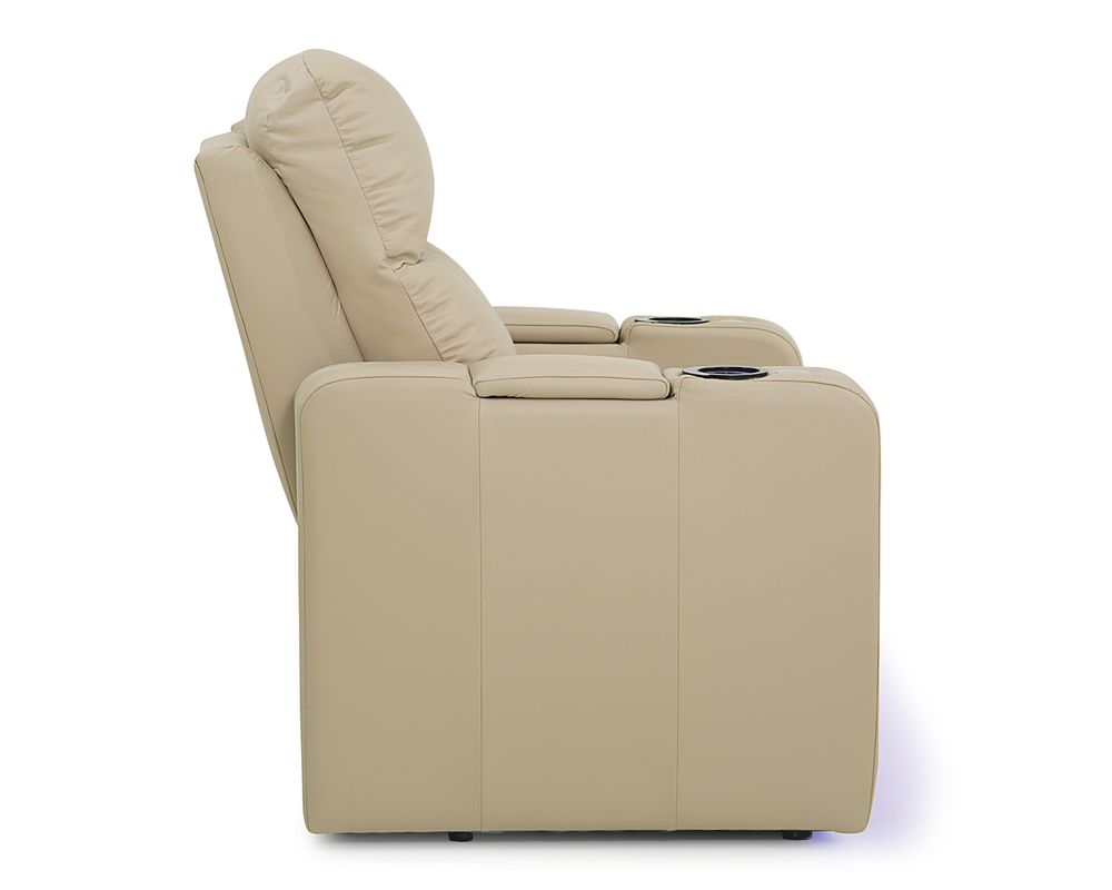 The Soundtrack collection of home theatre seating offers comfort and flexibility, featuring a power headrest with an extensive range of travel and a seamless power reclining function. A modern track arm with integrated storage finishes the design, providing the perfect place for keeping your belongings organized and within reach.