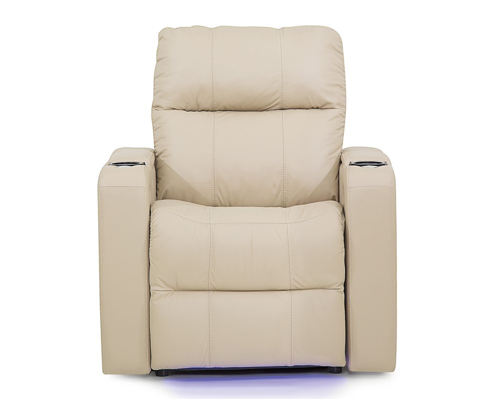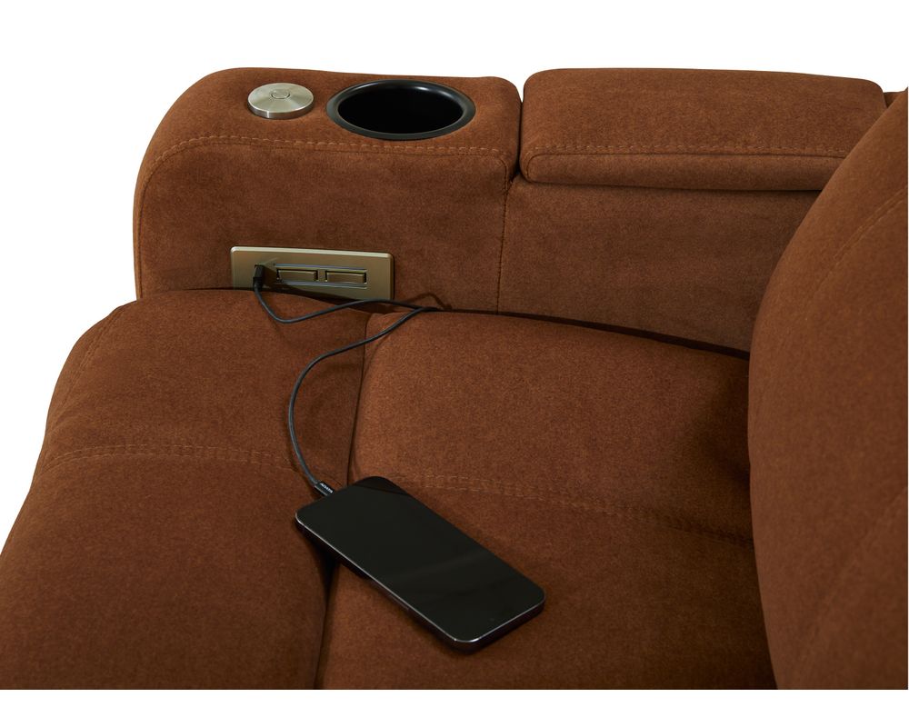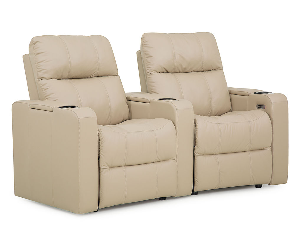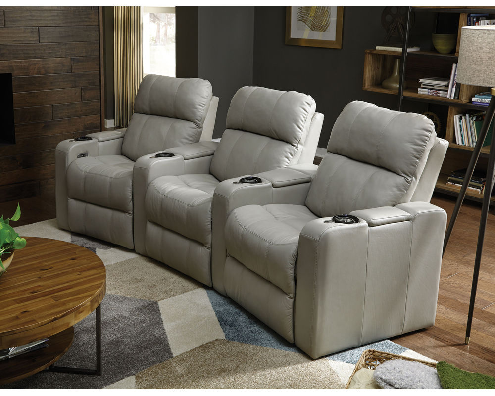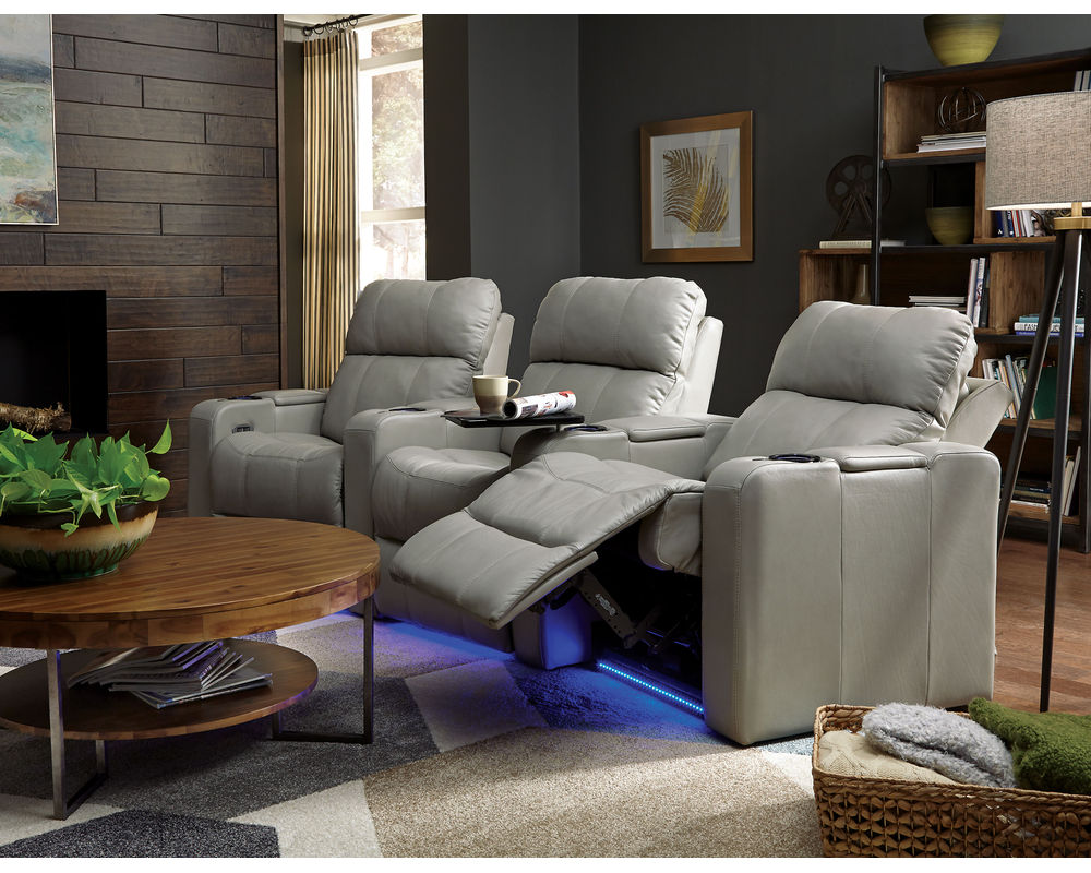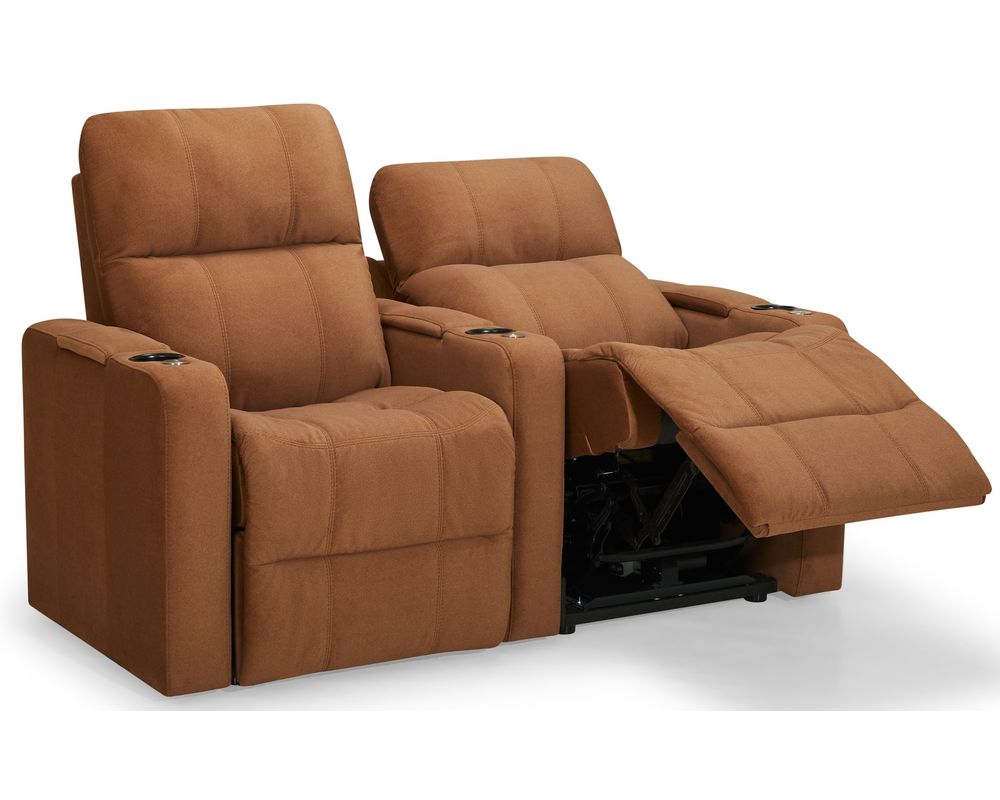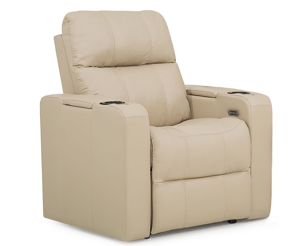 The Soundtrack collection of home theatre seating offers comfort and flexibility, featuring a power headrest with an extensive range of travel and a seamless power reclining function. A modern track arm with integrated storage finishes the design, providing the perfect place for keeping your belongings organized and within reach.