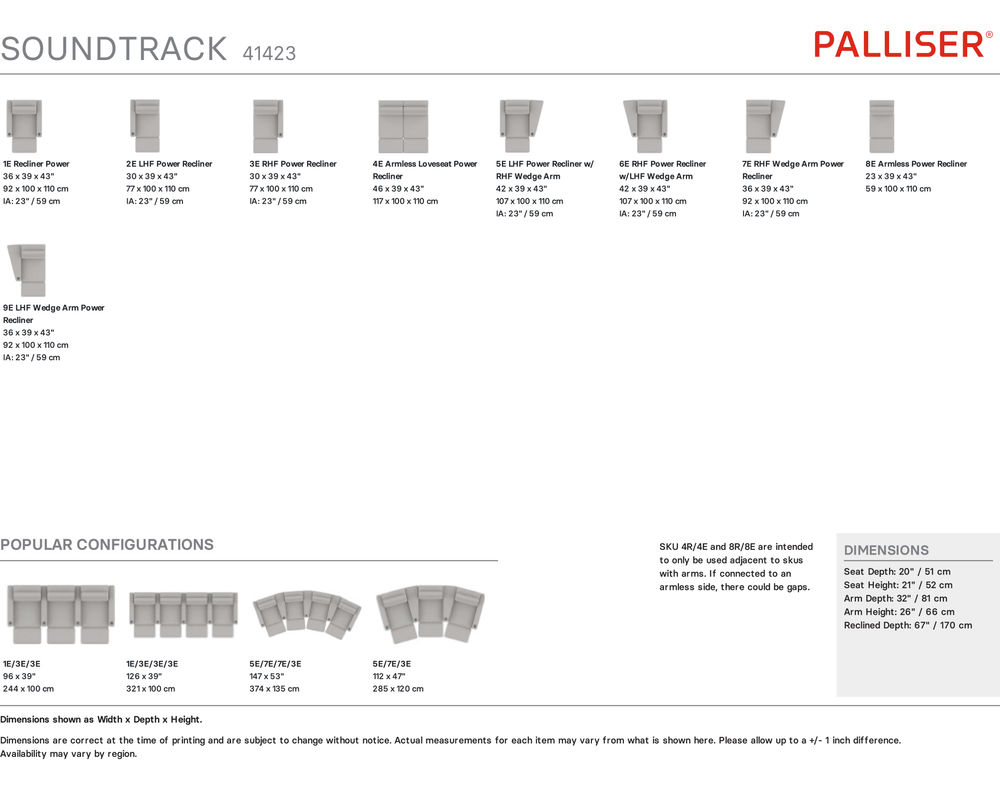 The Soundtrack collection features ultra-plush back cushions that are pillow soft and will embrace you with warmth and comfort. The bucket style, high-resiliency seat foam provides comfort and support whether sitting or reclining that lasts for years to come.