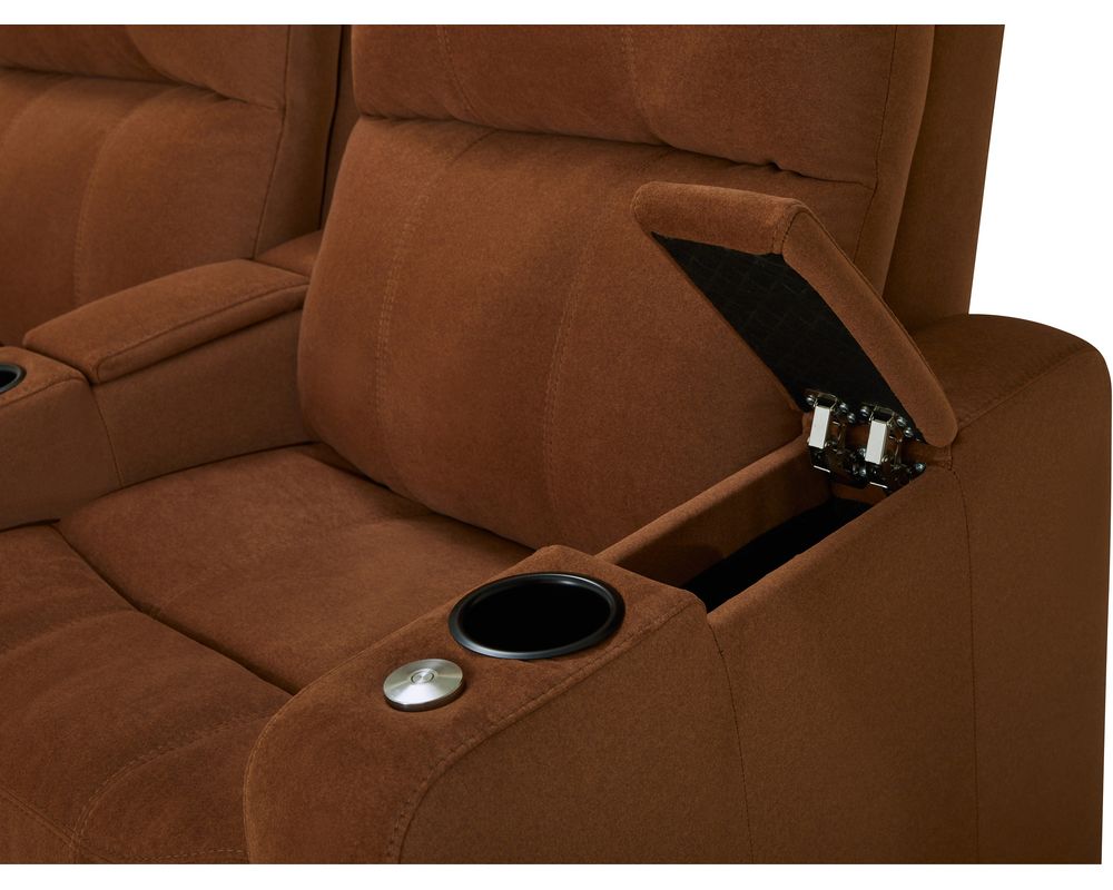 The Soundtrack collection of home theatre seating is not just about comfort and flexibility, it's about a unique experience. With a power headrest that offers an extensive range of travel and a seamless power reclining function, it's a modern marvel. The integrated storage in the armrest is a thoughtful touch, providing the perfect place to keep belongings organized and within reach.