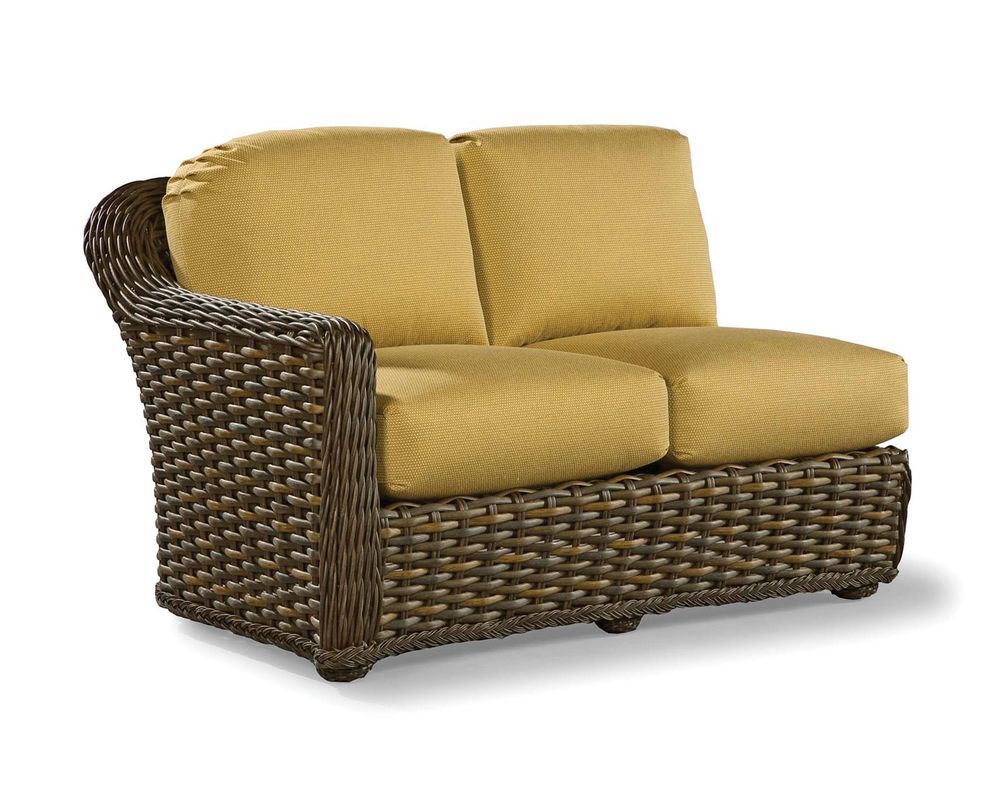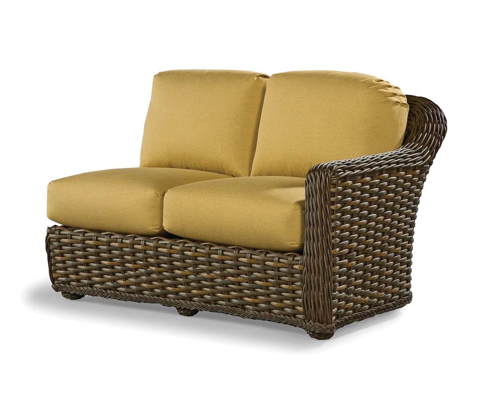 The South Hampton Sectional is a beautiful and comfortable addition to your outdoor living space. It features a wide and accommodating seating area that allows you to cozy up for a night of drinks and conversation with friends. This sectional, which measures 35 inches in height by 31 inches in width by 69 inches in depth, features a durable powder-coated aluminum frame that supports the seating. This frame is concealed by synthetic wicker that has been hand woven onto the frame and provides a classic wicker appeal. This wicker material, while it may be synthetic, has been given a natural finish to promote an authentic appeal. It has also been given a UV-protective coating to stop any sort of water damage.