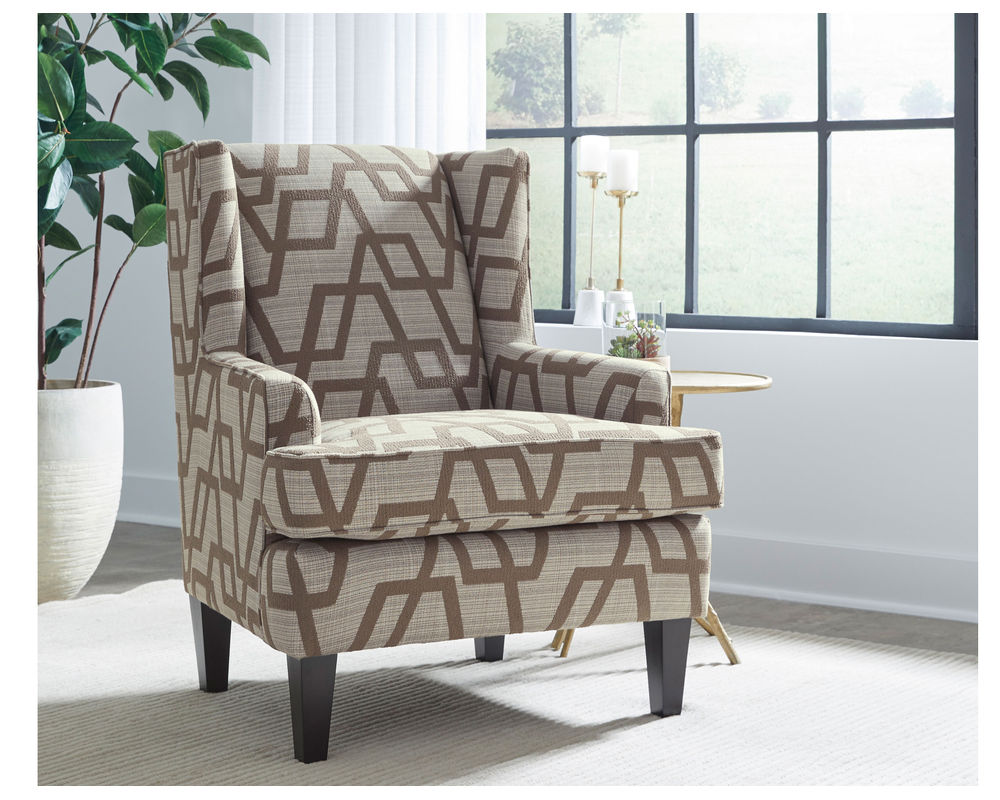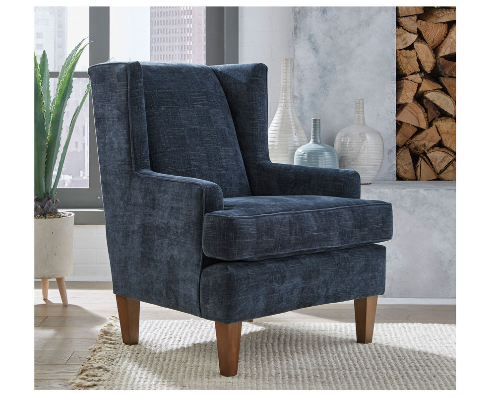 From Sofas and Sectionals.com: Introducing the Sterling Wing Chair, the perfect addition to your living room or bedroom. This transitional accent chair boasts a unique design with square wings and narrow, beveled arms; all accentuated with charming cording.