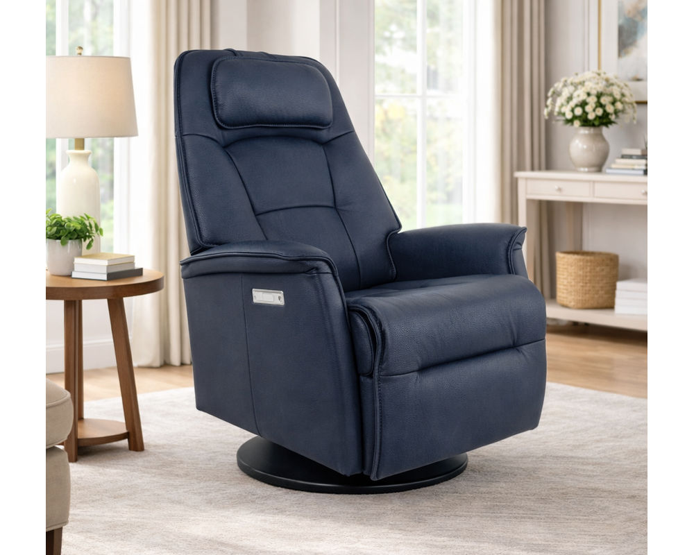 Stockholm Dual Power Swivel Glider Power Recliner Navy (In stock - Fast shipping)