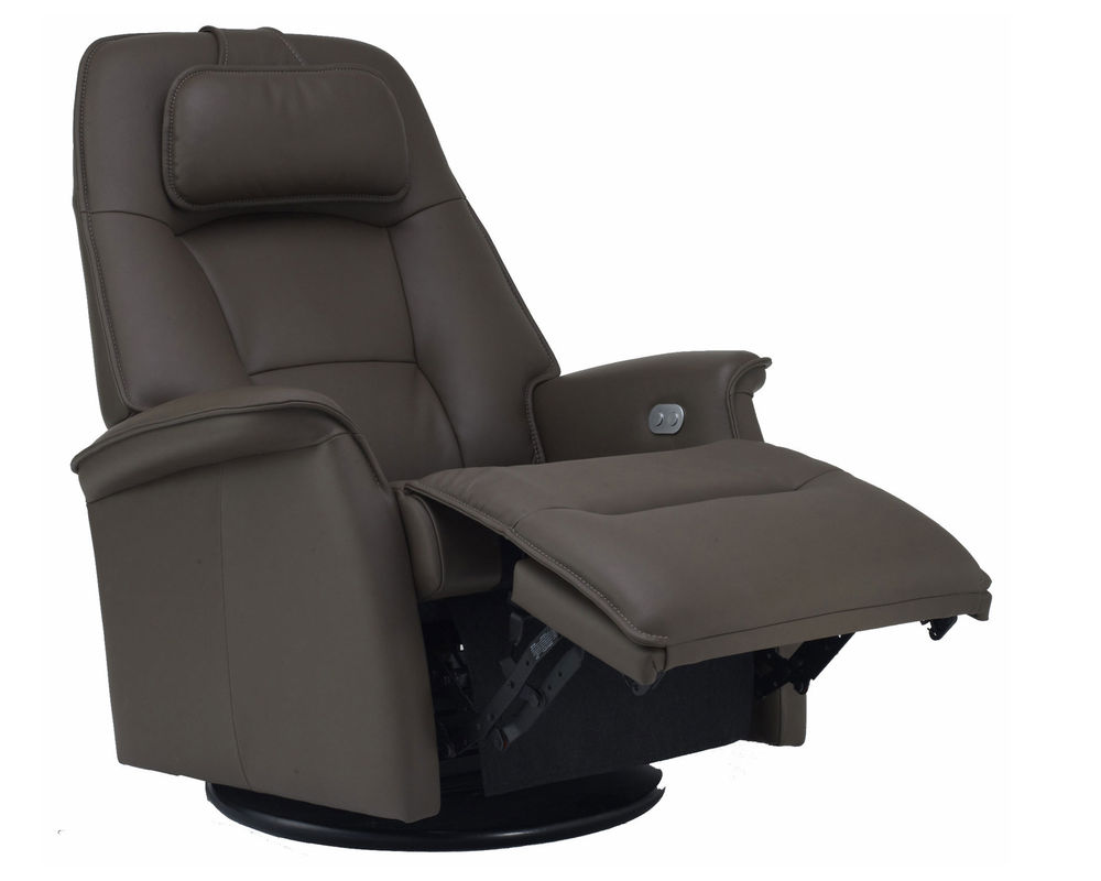 Introducing the Fjords Stockholm Swivel Glider Recliner - the perfect addition to any living room, nursery, or relaxation space. This high-quality chair is designed with your comfort and well-being in mind. It features an adjustable head pillow and motorized articulating headrest to support your lower back ergonomically. The Stockholm is available in motorized and manual versions, allowing you to choose the reclining option that best suits your needs.